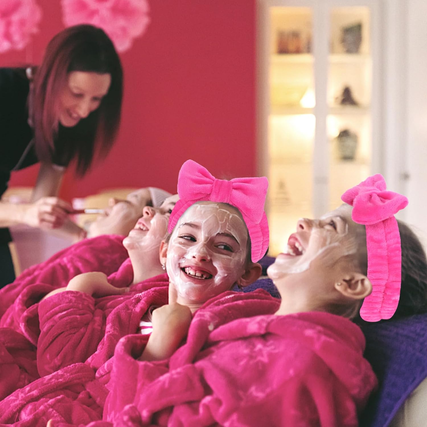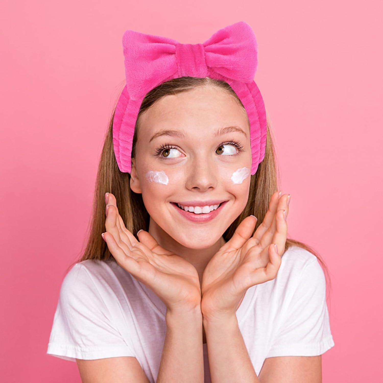 • 8Pcs Hot Pink Bow Spa Headbands: You will receive 8 pieces of hot pink spa headbands. The spa headband holds your hair in place while you wash your face, put on makeup, or apply a mask