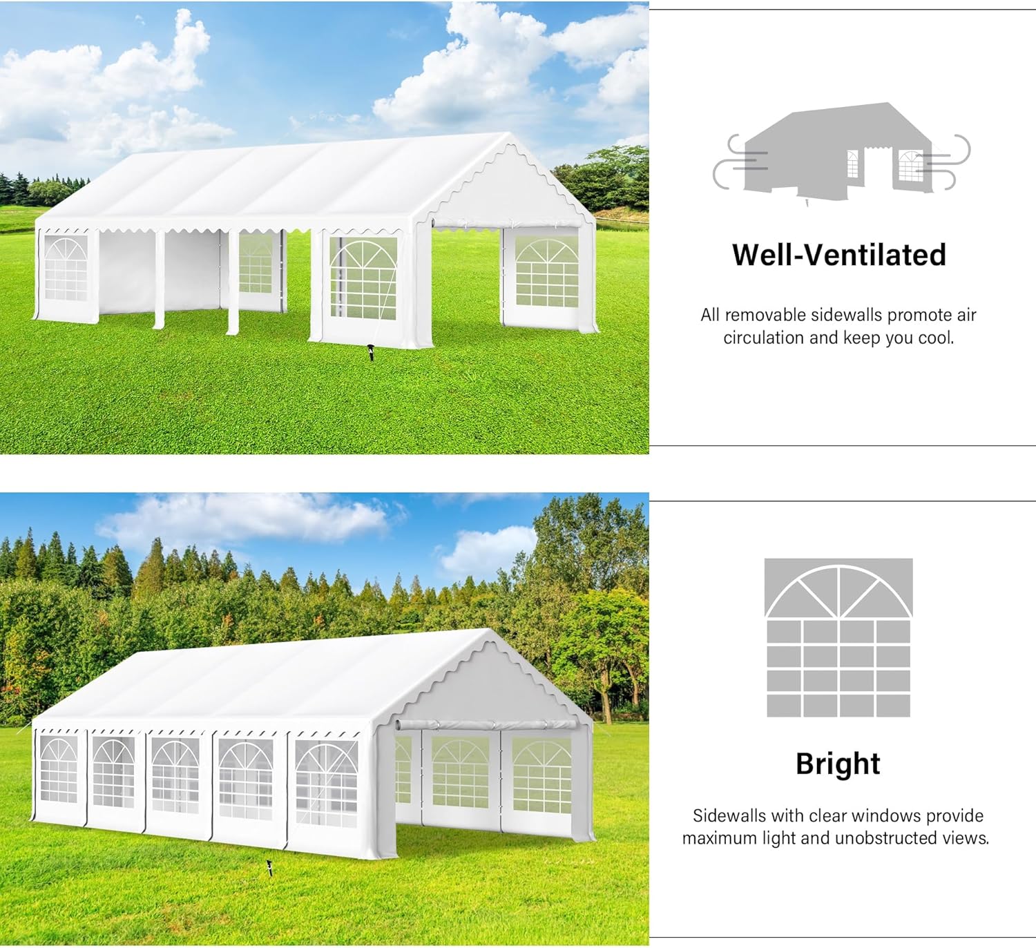 HERA'S PALACE 16'x 32' Outdoor Tents for Parties Large Canopy Tent with 12 Removable Sidewalls Heavy Duty Party Tent for Graduation Wedding and Birthday (White)