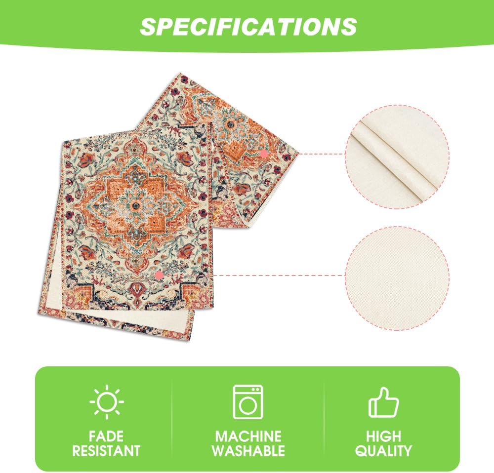 Artoid Mode Boho Bohemia Style Orange Table Runner, Country Rustic Farmhouse Magical Fall Kitchen Dining Table Decoration for Home Party Decor 13x60 Inch