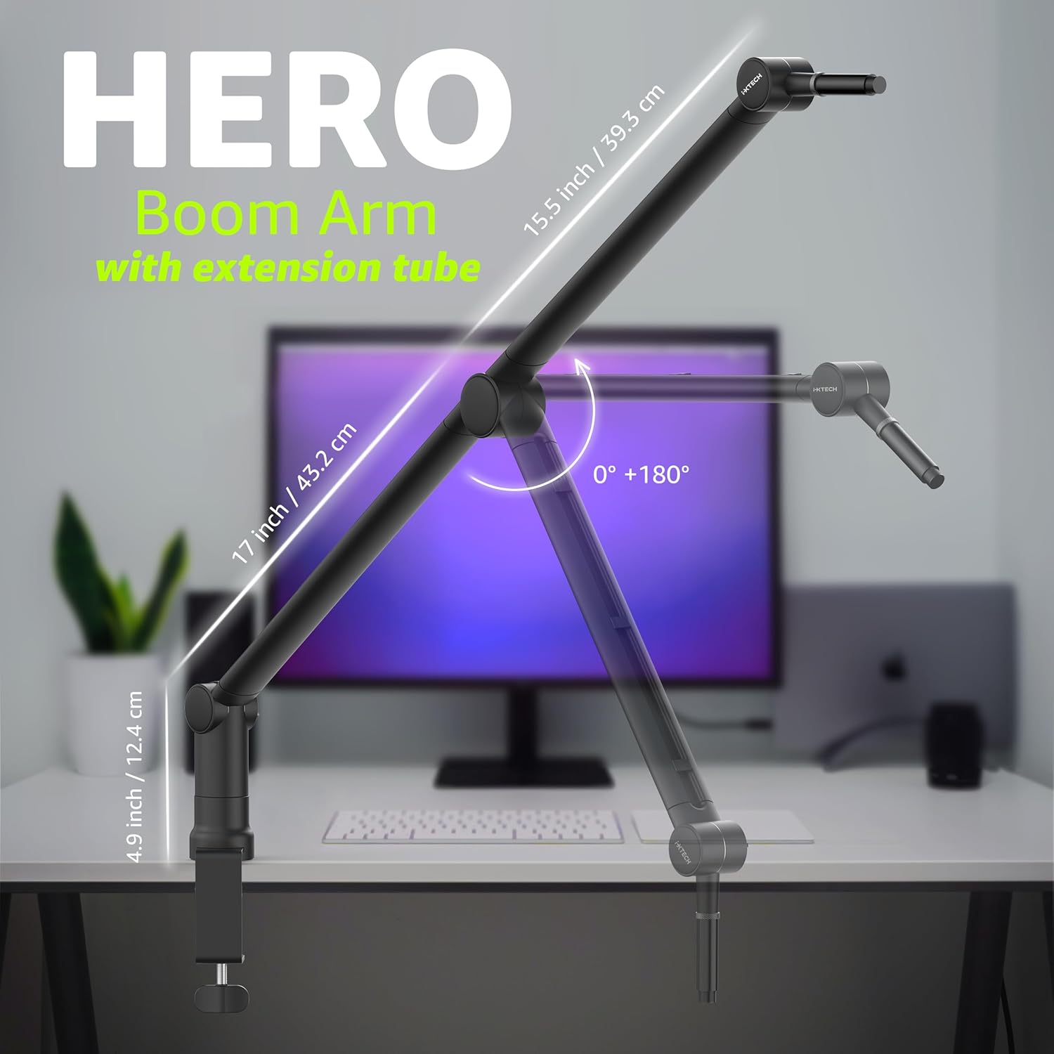 • Space-Saving Clip-On Cable Holder: With a convenient cable holder, this mic boom arm saves your desktop the mess of tangled cables, frees up a lot of space on your desk, and feels much more professional.