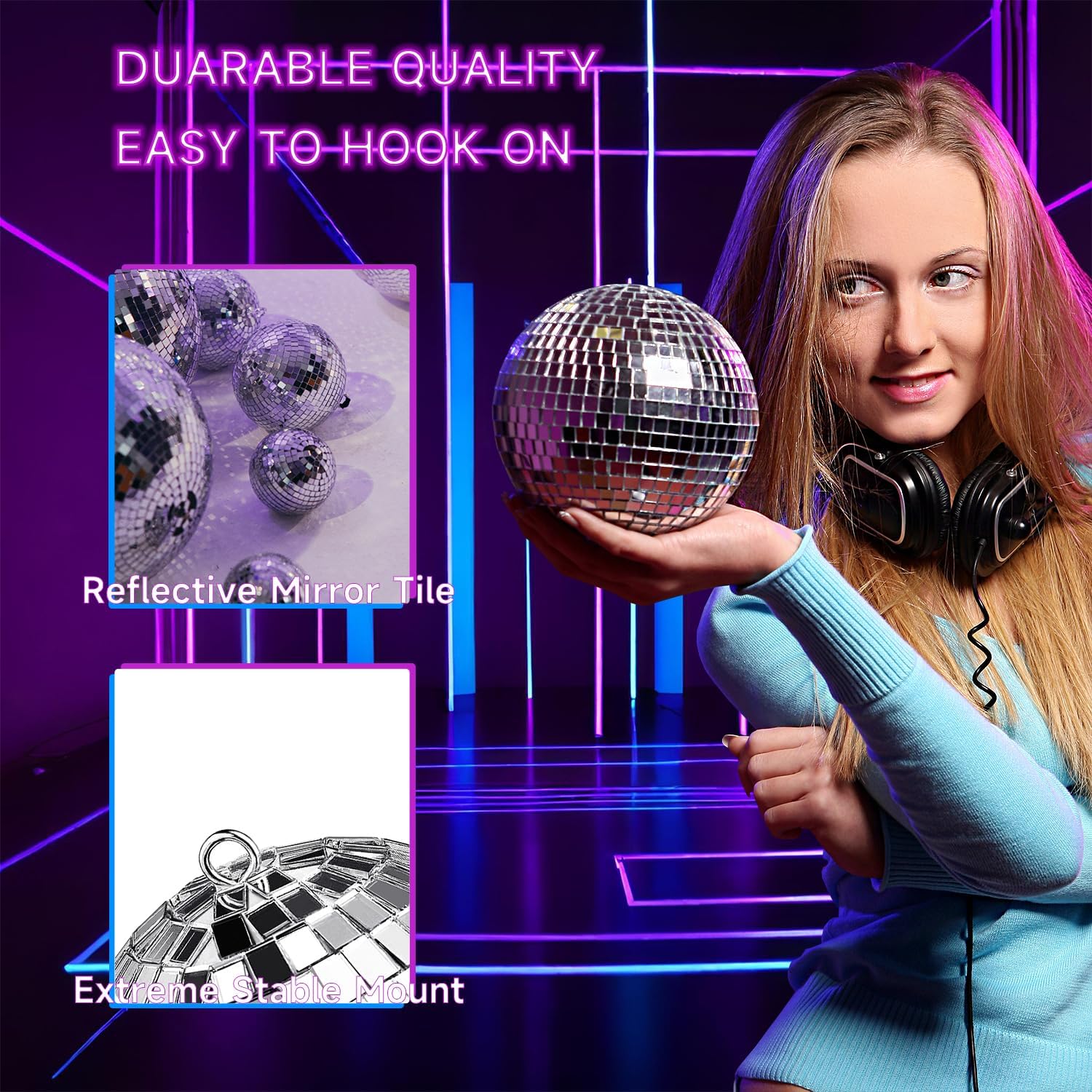 • 【Disco Ball Decor】: You can hang these disco balls on the room and make Christmas tree decor, disco ball cake topper, table centerpieces, window decorations and etc. Using them as backgrounds or props for taking beautiful photos, you can enjoy great fun with family members and friends.