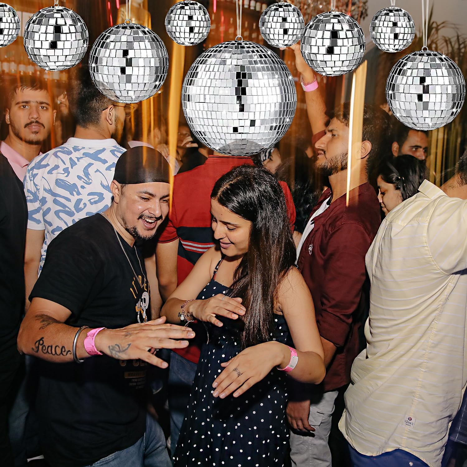 • 【Multiple Size and Sufficiant Quantity】: 54 pcs disco ball consist of large disco ball as well as small disco ball in different quantities, including 1 pcs in 6 inch, 4 pcs in 3.2 inch, 17 pcs in 2 inch and 32 pcs in 1.2 inch, which allow you to match them more freely and meet the needs of various scenes.