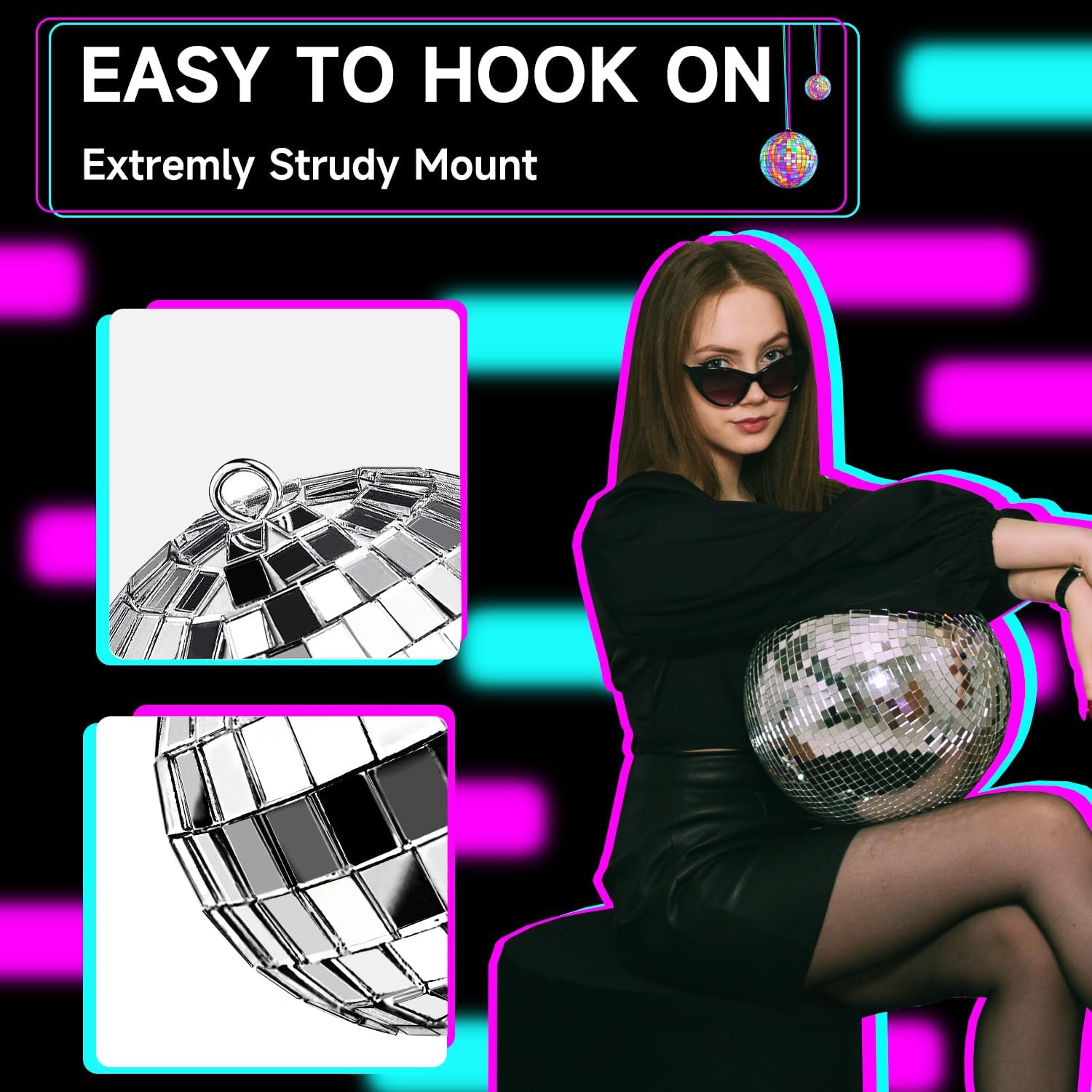 • 【Reflective Mirror Material】: Made of foam material inside with high reflectivity mirror squares covered on its surface, which reflects bright light. Dynamic light adds a cheerful atmosphere to the party.
