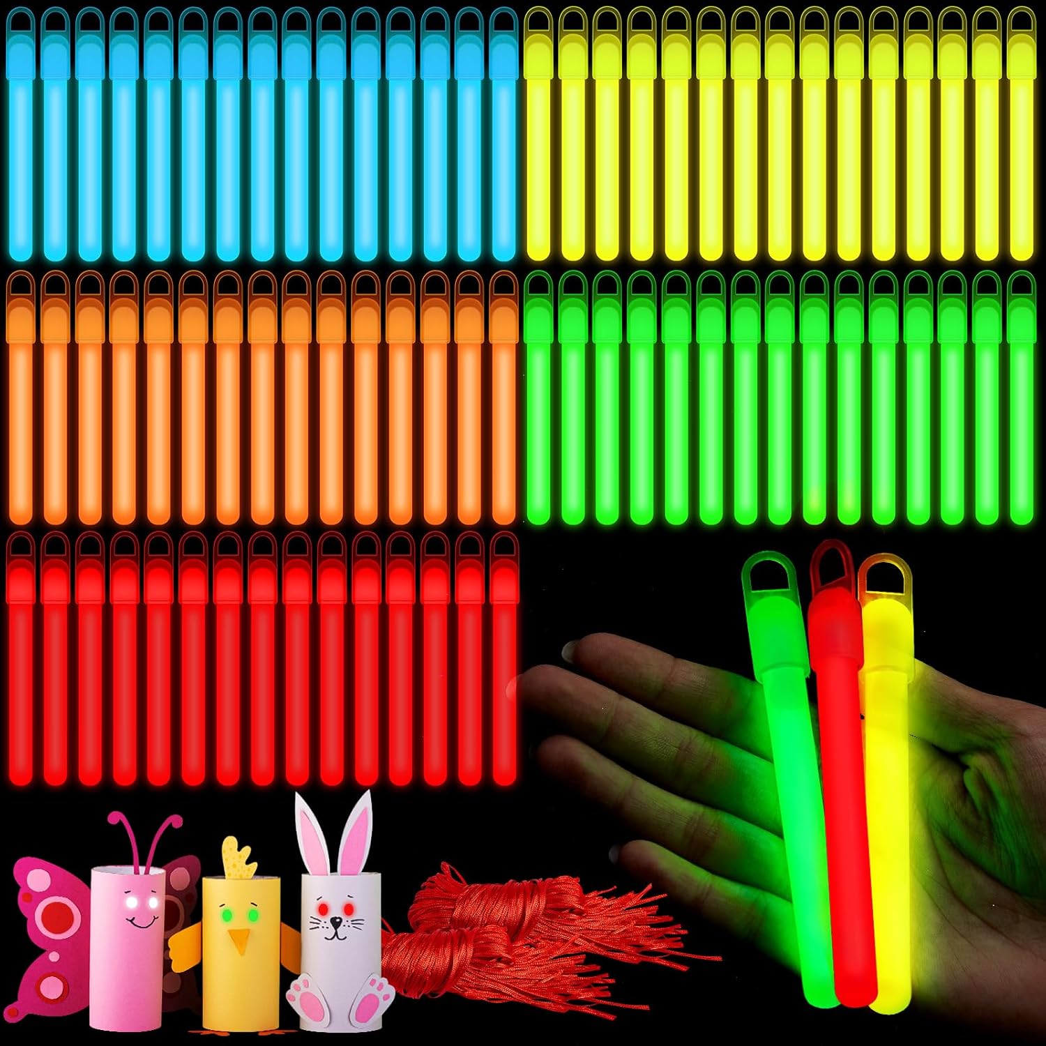 Lewtemi 4" or 6" 100 Pack Bright Glow Sticks Bulk, Glow in The Dark Party Supplies Birthday and Holidays Party Favors