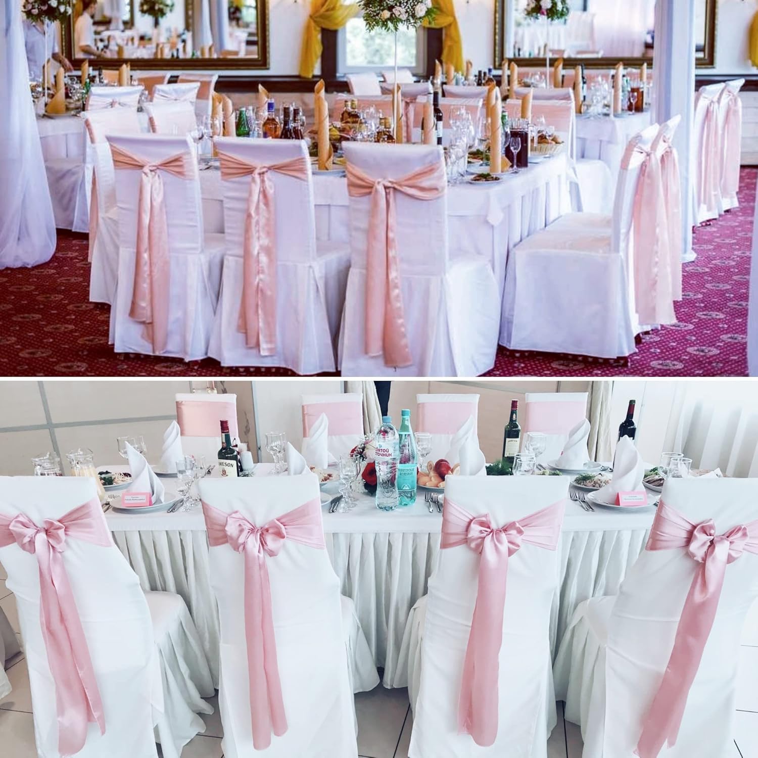 • 【Quantity and Size】50 pcs chair decorative satin sashes bow, designed for wedding events banquet home kitchen decoration, enough quantity which will meet your wedding banquets and daily use. 50 pcs satin chair sashes bows decorative are perfect for universal chair cover. The size of the satin chair sashes ties is approx.7 x 108 inch/ 17 x 275 cm, long enough for you to tie a good size chair bow, makes the satin ties a perfect choice for all wedding and party chairs. only include chair sashes.