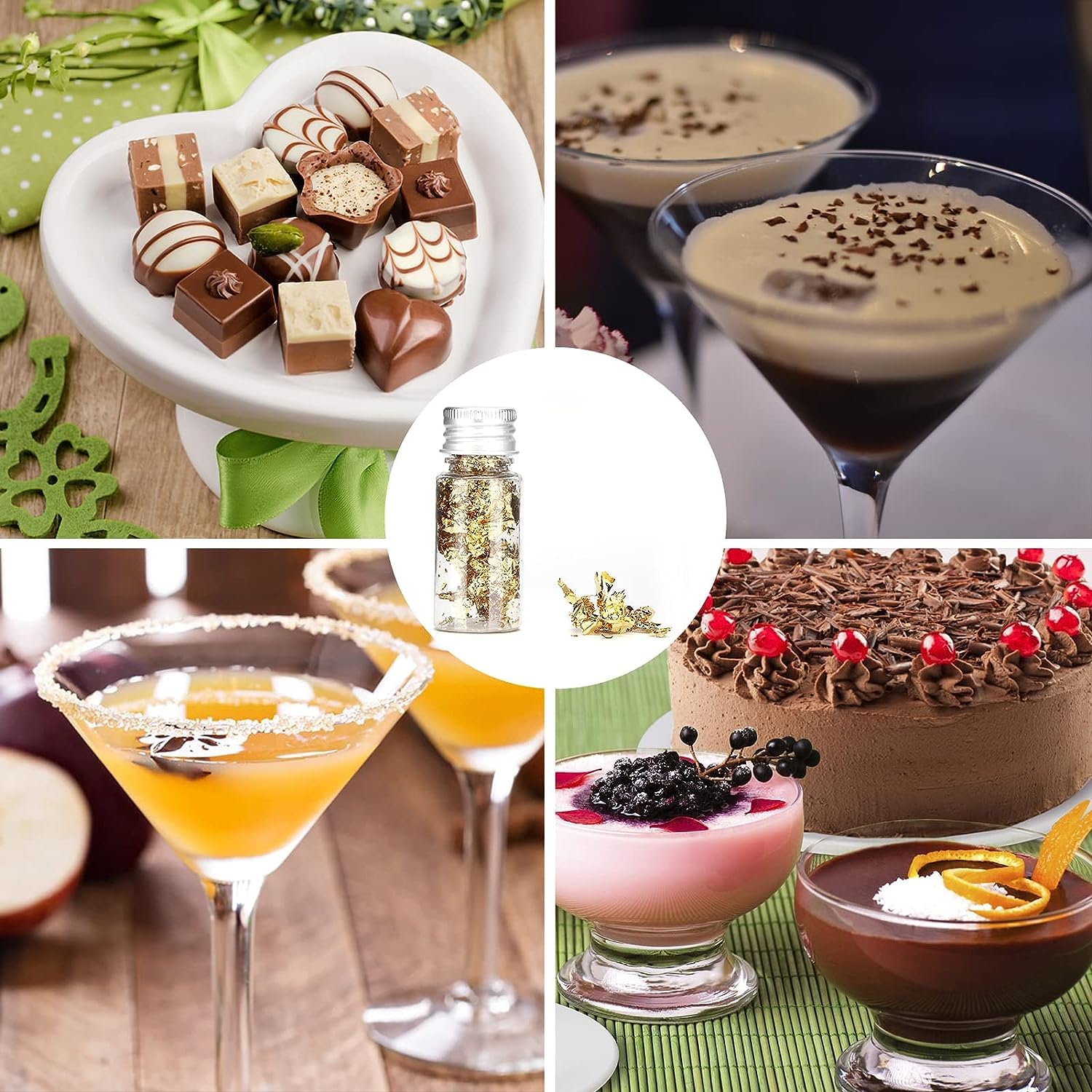 • 【Perfect Decoration For Food】Edible gold flakes is a perfect decorative items, can be added to coffee, tea, hot pot, seasonings, cosmetics, bath agents, etc. Gold leaf fakes beautiful and stylish, gold flakes for crafts can be widely used in families, bars, restaurants, etc.