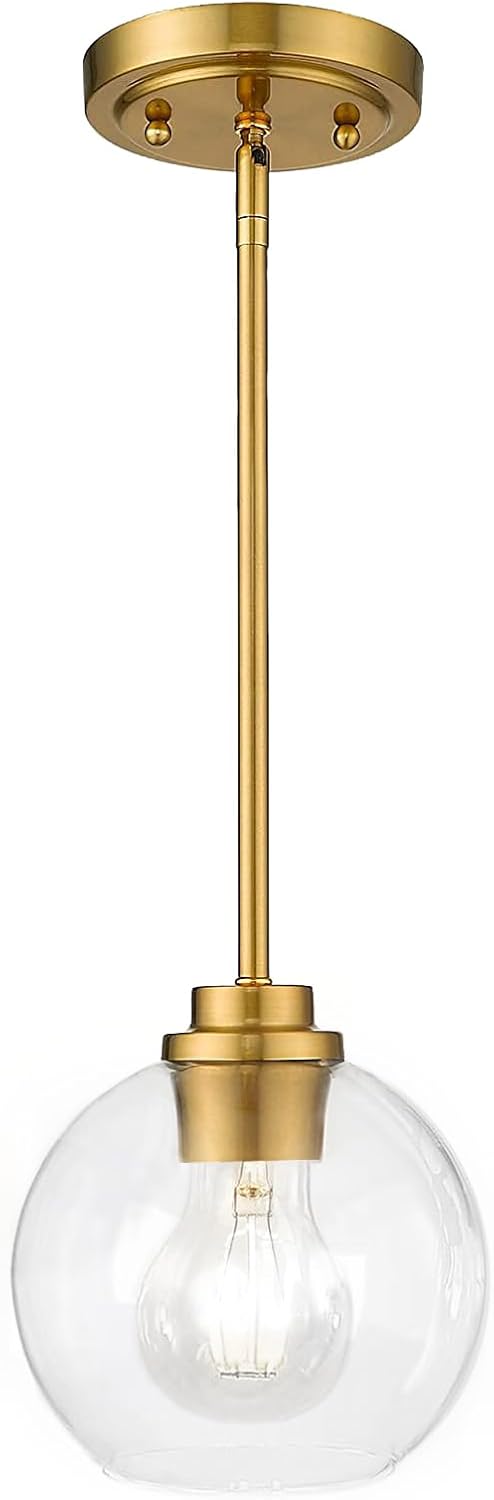 • 【STYLISH DESIGN】These farmhouse pendant lights feature a stunning 7" clear glass globe paired with a luxurious gold metal base that resists fading and corrosion. The downward-casting dome silhouette creates perfect task lighting over your kitchen island, while the transparent glass shade adds modern elegance to any farmhouse, contemporary or traditional decor.