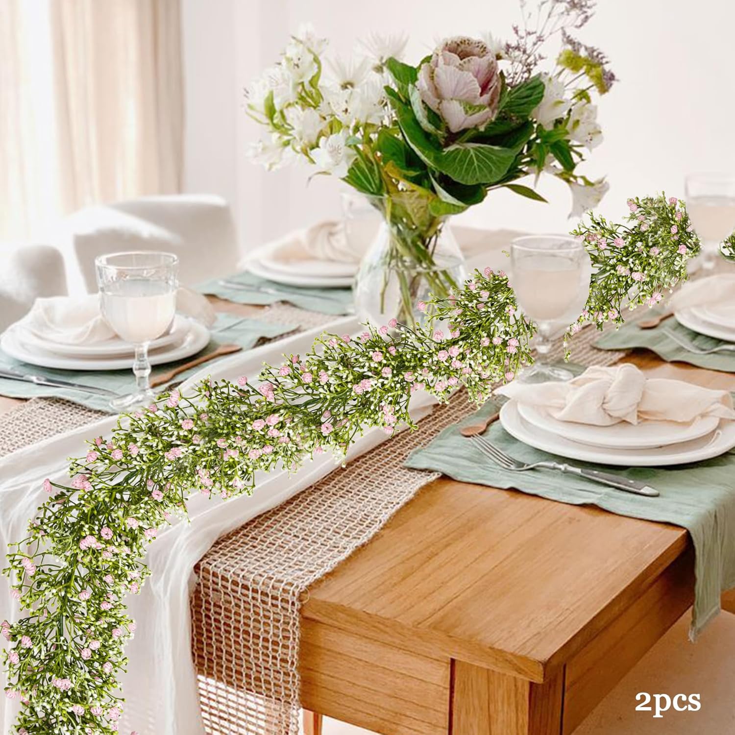 2 Pcs 5.8ft Artificial Baby Breath Flower Vines, Babys Breath Artificial Flowers Real Touch Faux Gypsophila Hanging Fake Baby's Breath Garlands for Wedding and Baby Shower Decor(Pink)