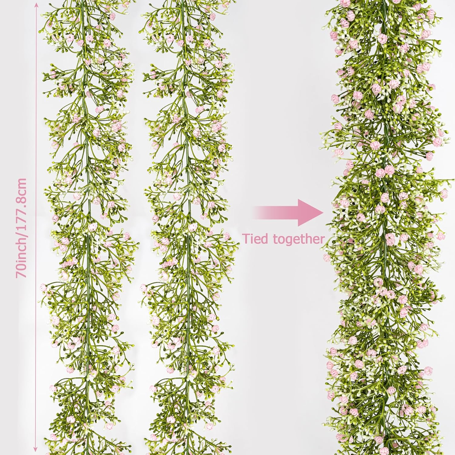 • 【ABUNDANT QUANTITY】:There are two baby's breath vines in each package. Each vine is 70 inches in length and 4.33 inches in width. With a large number of flowers and a long vine length, you can freely decorate. Whether it is hung on the wall, wrapped around the railing or used for table decoration, it can show a unique effect.