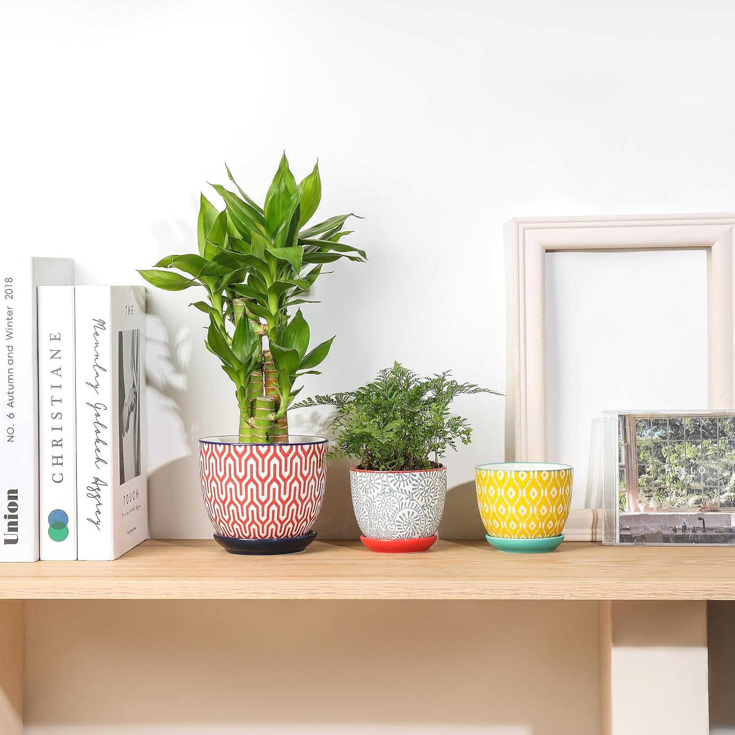 Selamica Ceramic Succulent Pots with Drainage Holes, Small Flower Pots 3.5 Inch Plant Pots for Indoor Plants with Saucers, Cactus Succulent, Home Decor, Set of 4, Assorted Colors