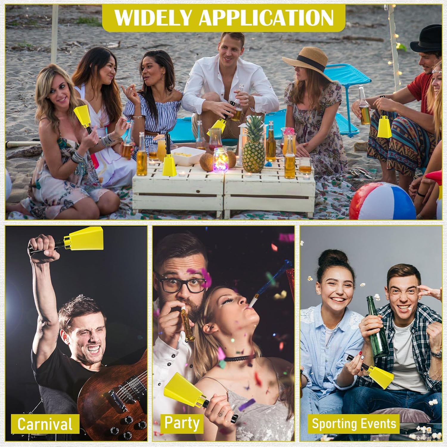 • Alert Safety Tool: the loud and clear sound that this yellow noise makers for sporting events produce are good for getting attention, making it useful in performances and sporting events; And also the cow bell is suitable for the elder and disabled to ask for help