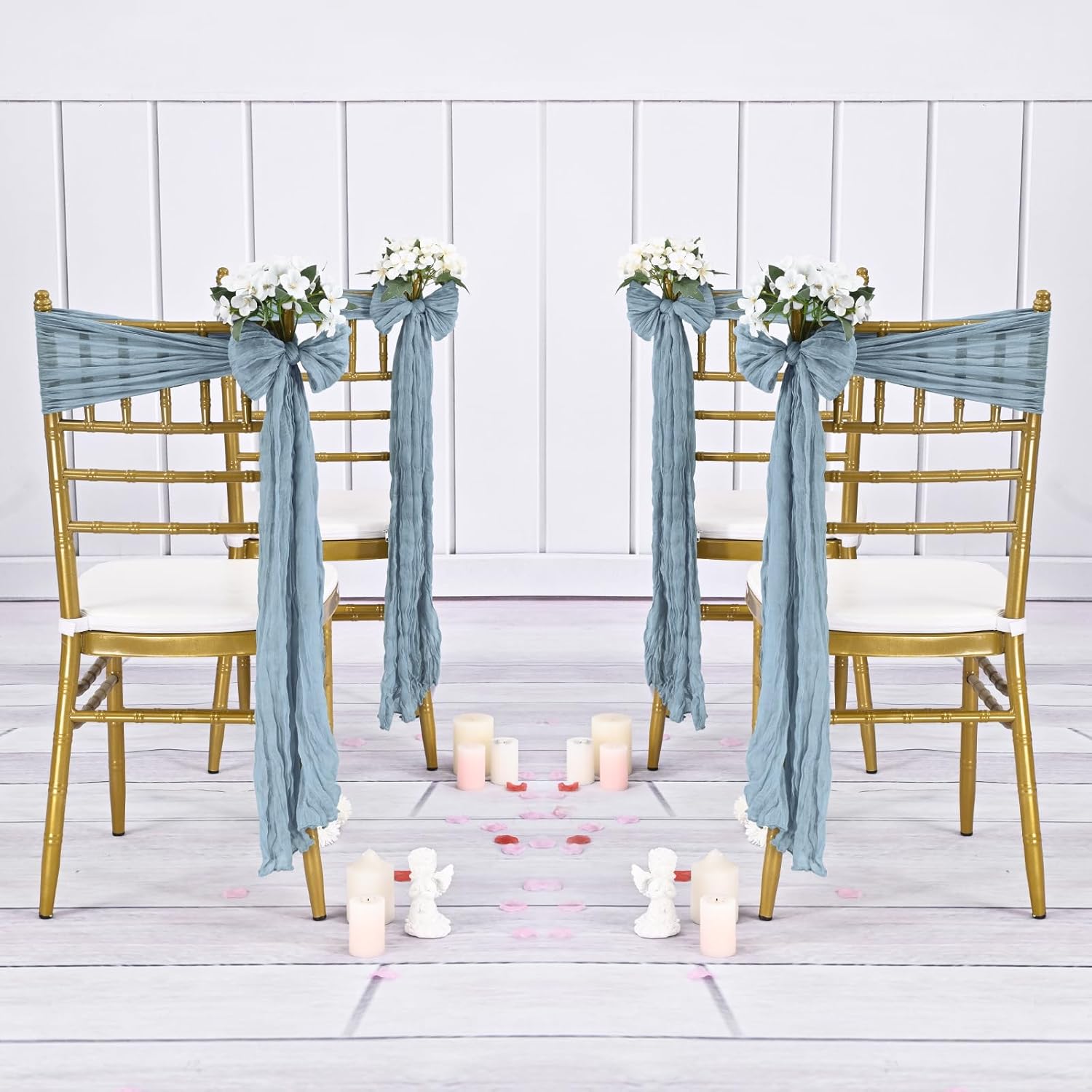 • 【Exquisite Craftsmanship】The cheesecloth chair sashes adopt unique handmade cheese cloth craftsmanship. The special wrinkle appearance design makes it more elegant, which can have a nice scene decoration effect and easily create an elegant and romantic atmosphere. The exquisite locking edges make it fixed in shape and not loose, which enhances the durability of the product and makes it easier to fix it on the chair without falling off.