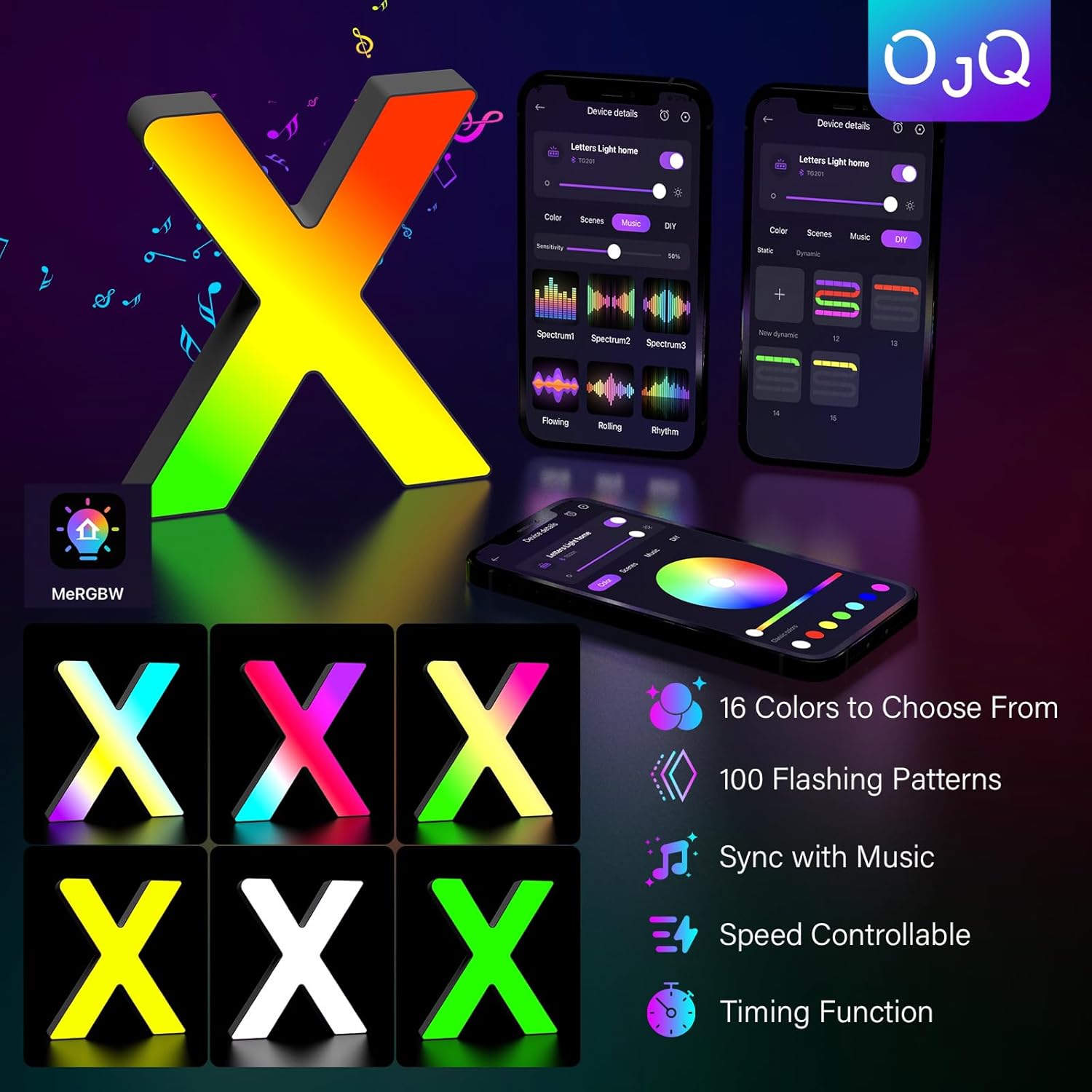 OJQ Light Up Letters LED Letter - Marquee Letters Room Decor Alphabet Letter Music Sync Color Change Colorful - Christmas Birthday Gifts for Girl - Teen Girls Gifts Party Home Wall Decor