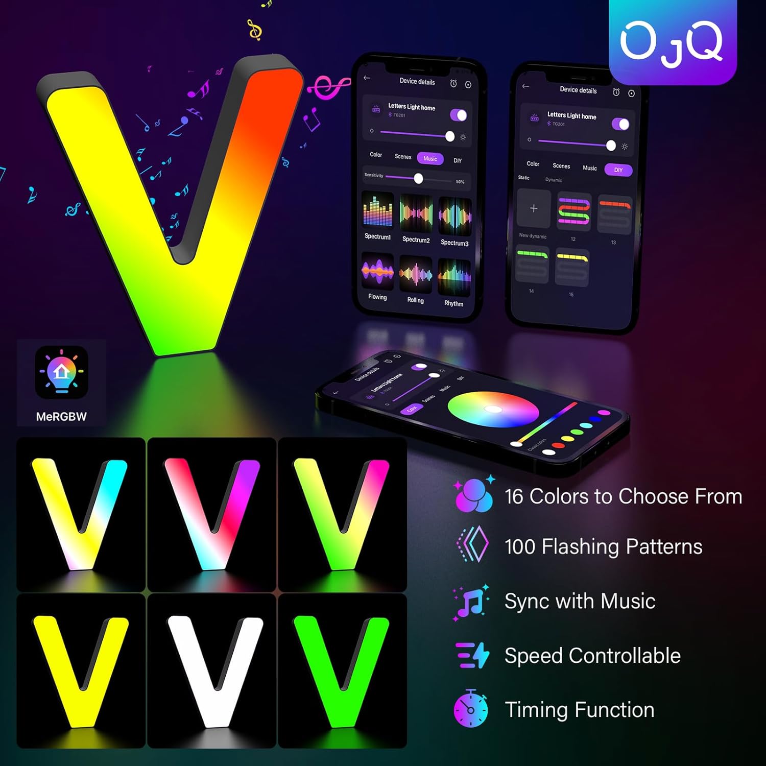 OJQ Light Up Letters LED Letter - Marquee Letters Room Decor Alphabet Letter Music Sync Color Change Colorful - Christmas Birthday Gifts for Girl - Teen Girls Gifts Party Home Wall Decor