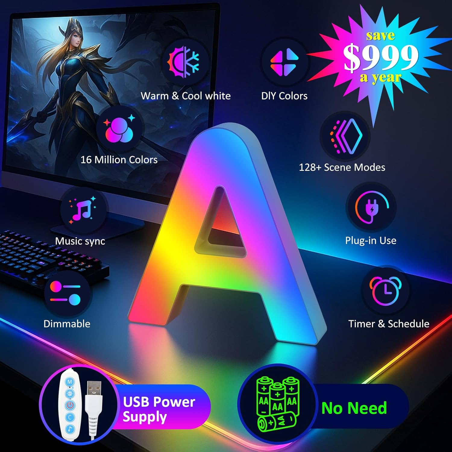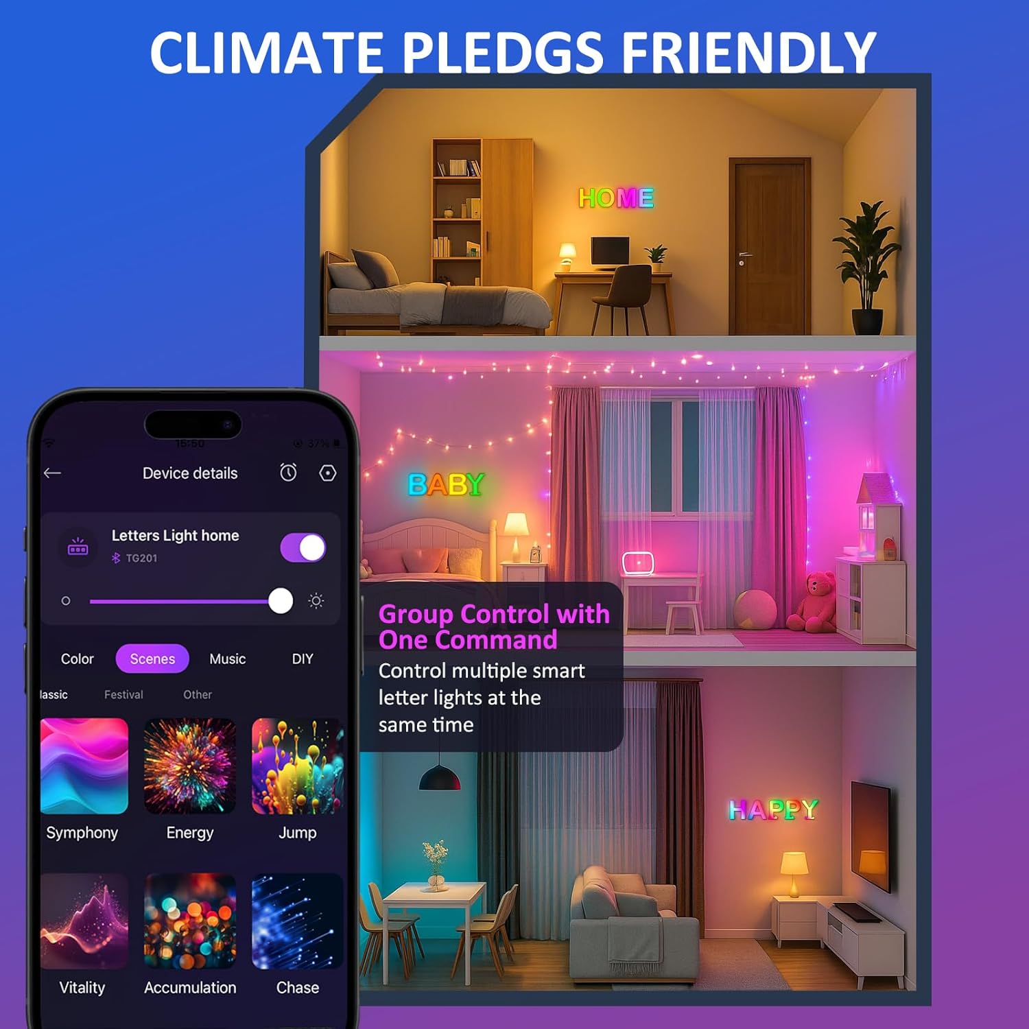 • Smart APP and DIY: LED letter lights can be freely controlled by smart APP, with hundreds of different colors and rhythm light effects. The LED lights are colorful, durable and adjustable in brightness, you can also DIY your own unique colors and combinations to suit the ambience of the room