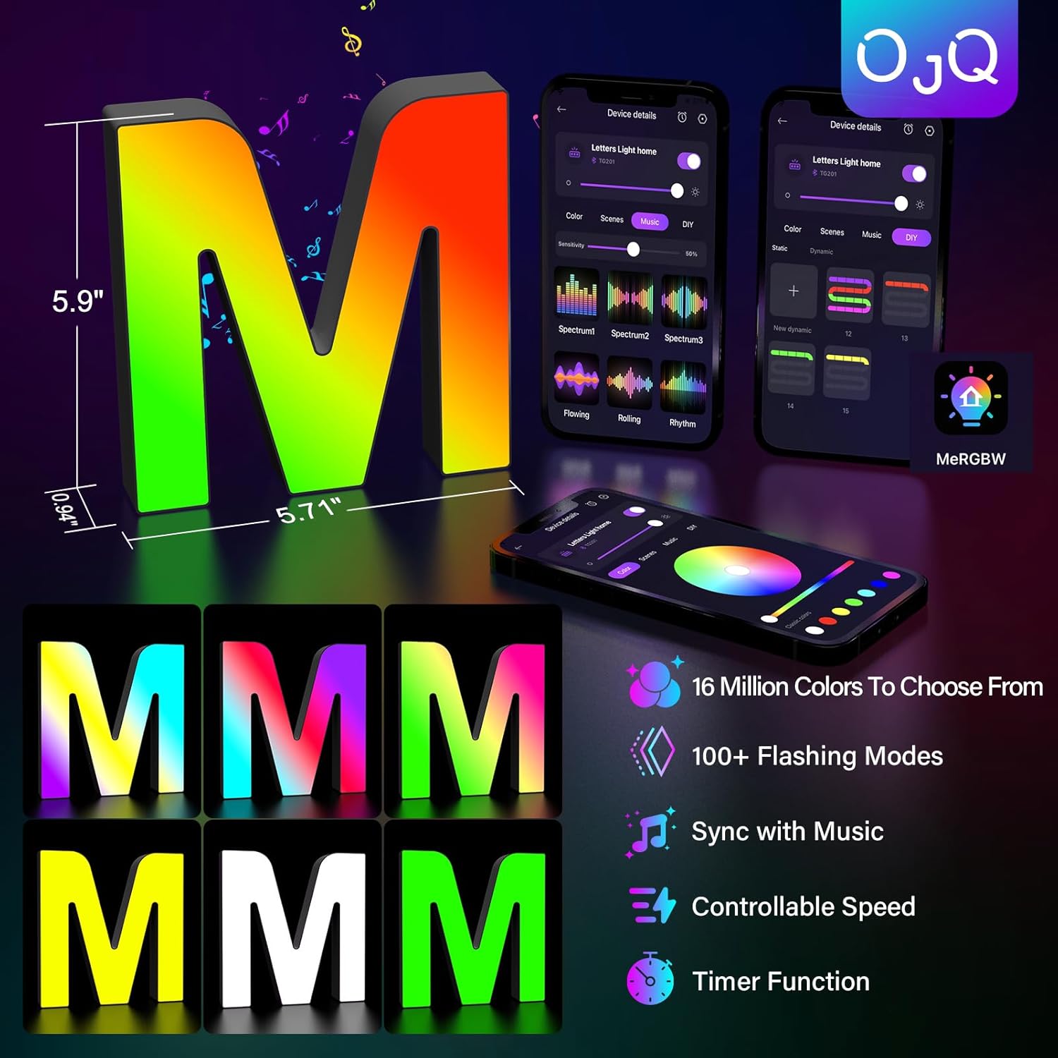 OJQ Light Up Letters LED Letter - Marquee Letters Room Decor Alphabet Letter Music Sync Color Change Colorful - Christmas Birthday Gifts for Girl - Teen Girls Gifts Party Home Wall Decor