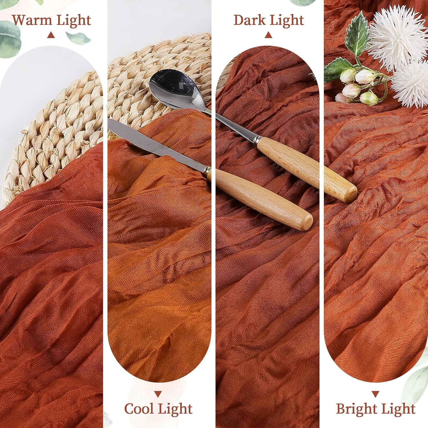 12 Pack Terracotta Cheesecloth Table Runner 10FT Long Boho Gauze Table Runner Rustic Sheer Runner for Wedding Bridal Baby Shower Birthday Party Table Decor Fall Thanksgiving Christmas Decor