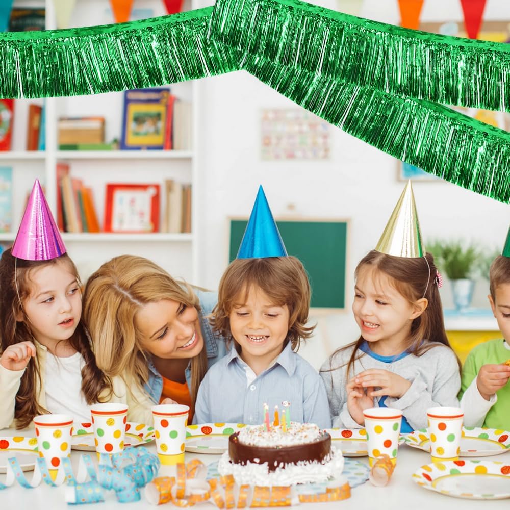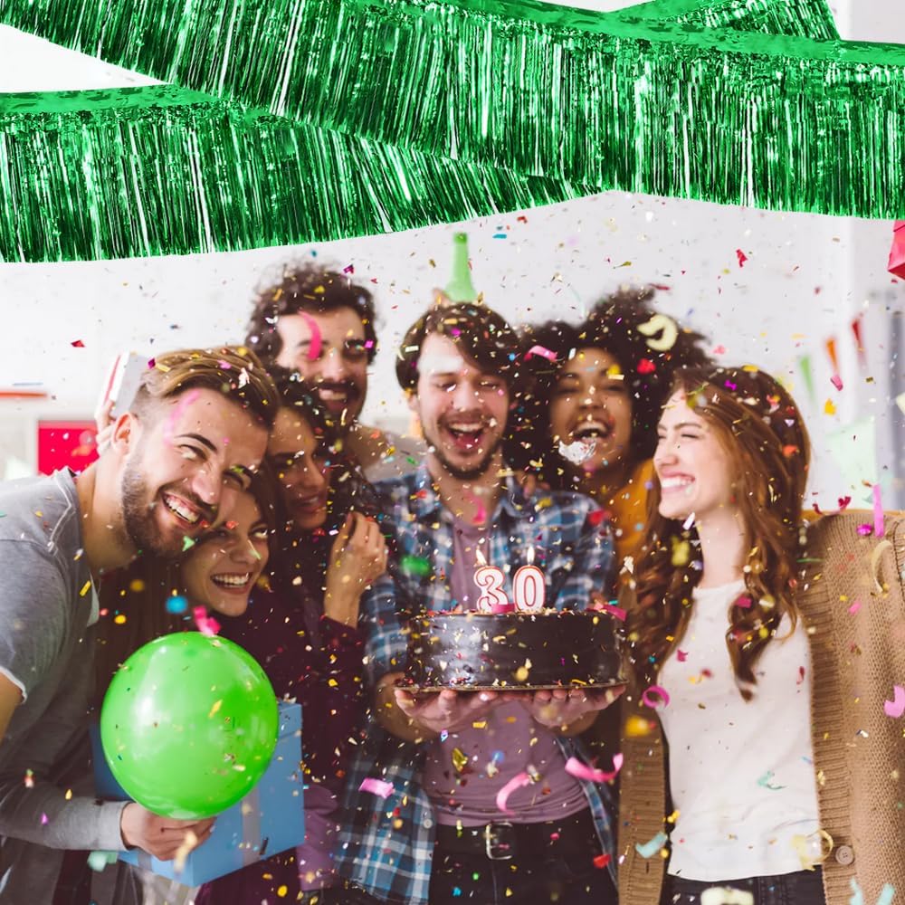 BEISHIDA 3 Packs Metallic Foil Fringe Garland Green Wall Hanging Tinsel Fringe Banner for Halloween Christmas Car Floats Bridal Shower Wedding Birthday Easter Graduation Holiday Party Decoration 30 Ft