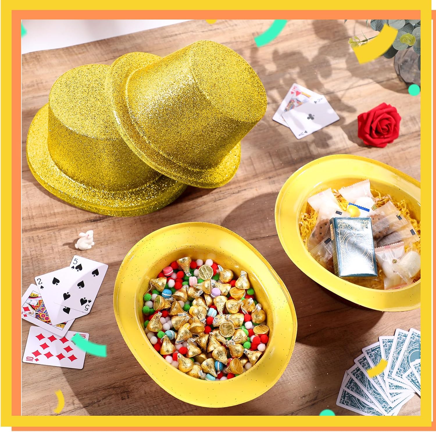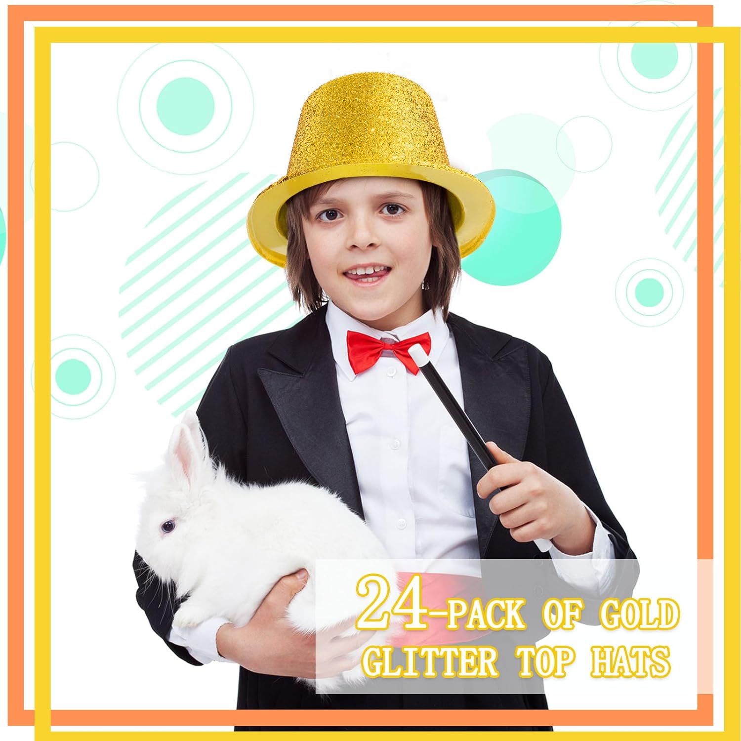 • Generous Package Deal: each package includes 24 glittering gold top hats; This makes it ideal for group events like parties, gatherings or stage shows; You can share the fun with partners and family