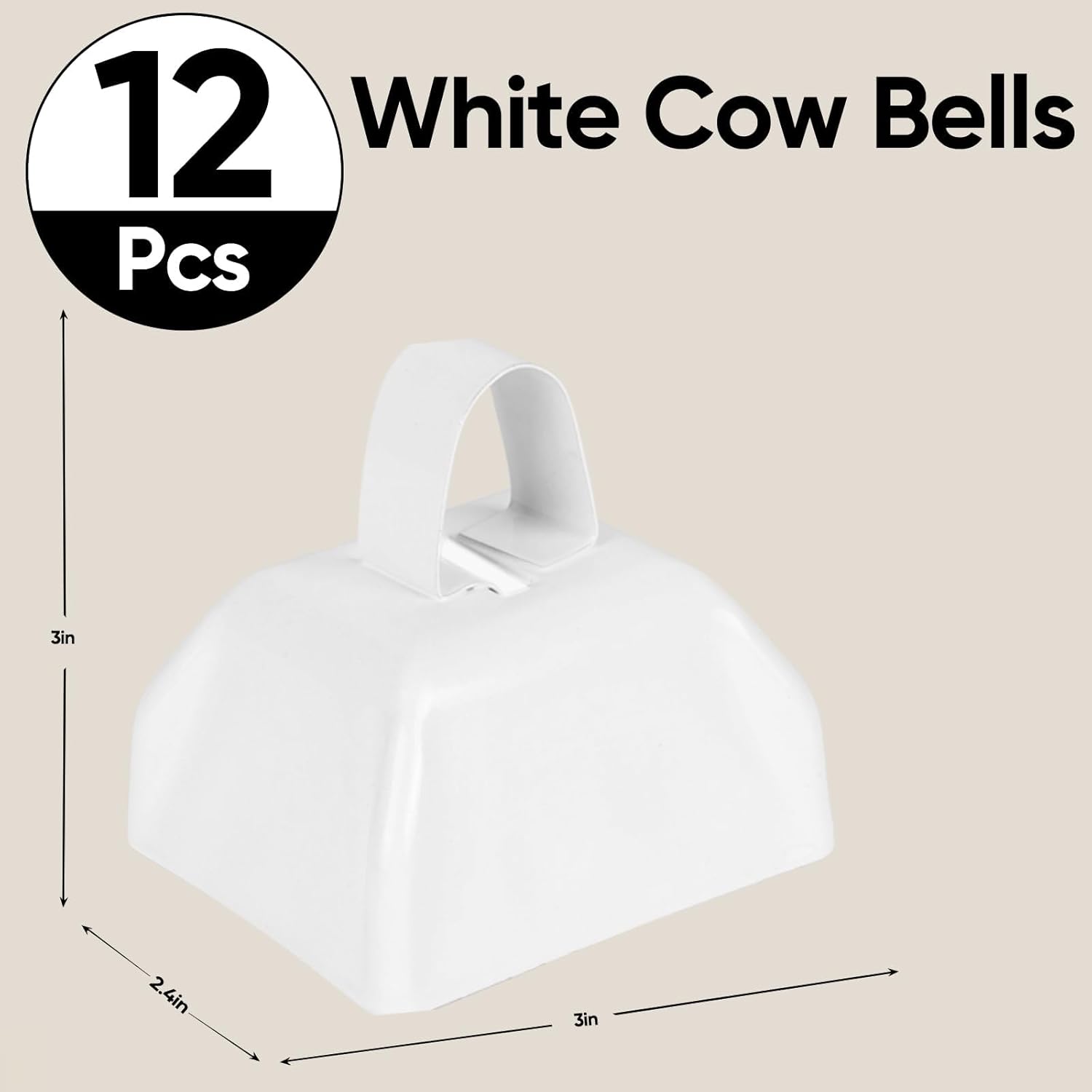 • Metal Cowbell with Handle: Coming with 12 pieces white cowbells bulk with top handles, easy to carry; When not in use, they can be hung on the wall or shelf to save space and decorate the room; Cowbell noisemakers can also add atmosphere and visual effects in Christmas, Halloween, weddings, and other special festivals