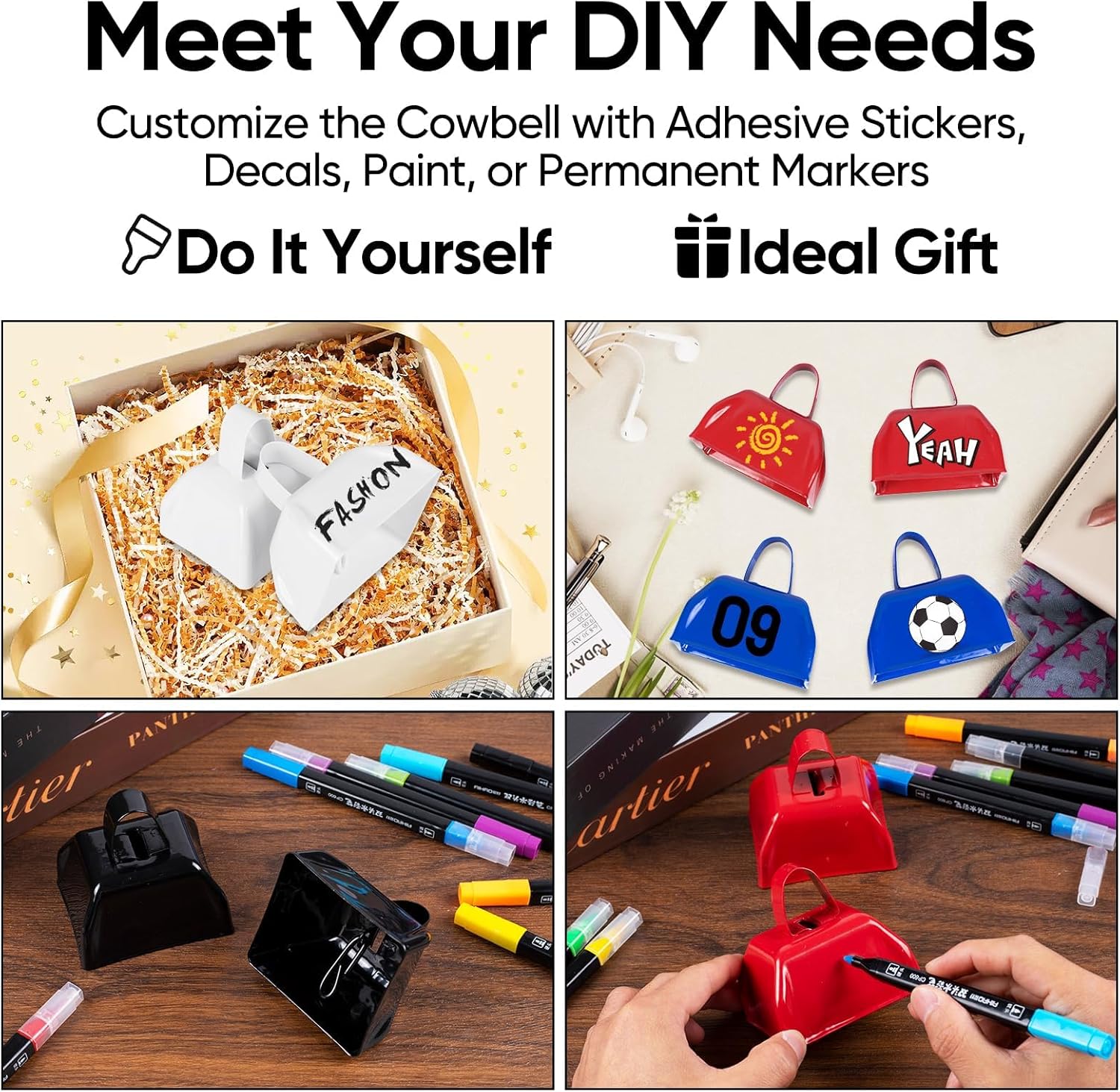 • Ideal Gift: This cowbell noise maker is the perfect Christmas or birthday gift for your family, friends and elderly parents; It has a flat surface and you can make your own unique cow bell by decorating them with paints, markers or stickers
