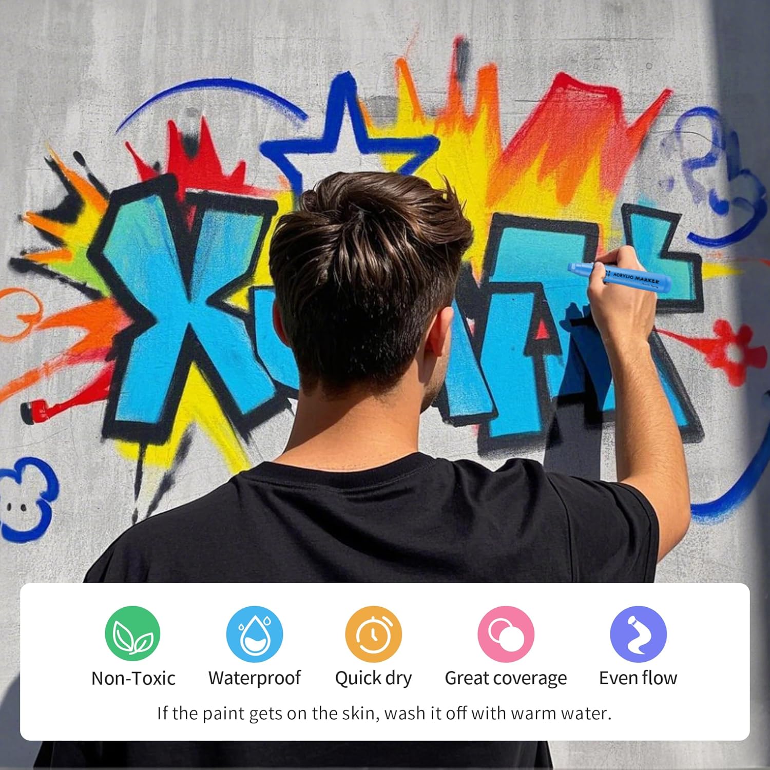 • Acrylic Graffiti Markers: BIGTHUMB Jumbo Poster Markers is made with the highest-quality non-toxic, acid-free,no odor, no-leakage water-based acrylic ink that is waterproof, quick dry, long-lasting, and has a smooth ink flow. Each permanent painting marker conforms to ASTM d-4236 and EN-71 safety standards.