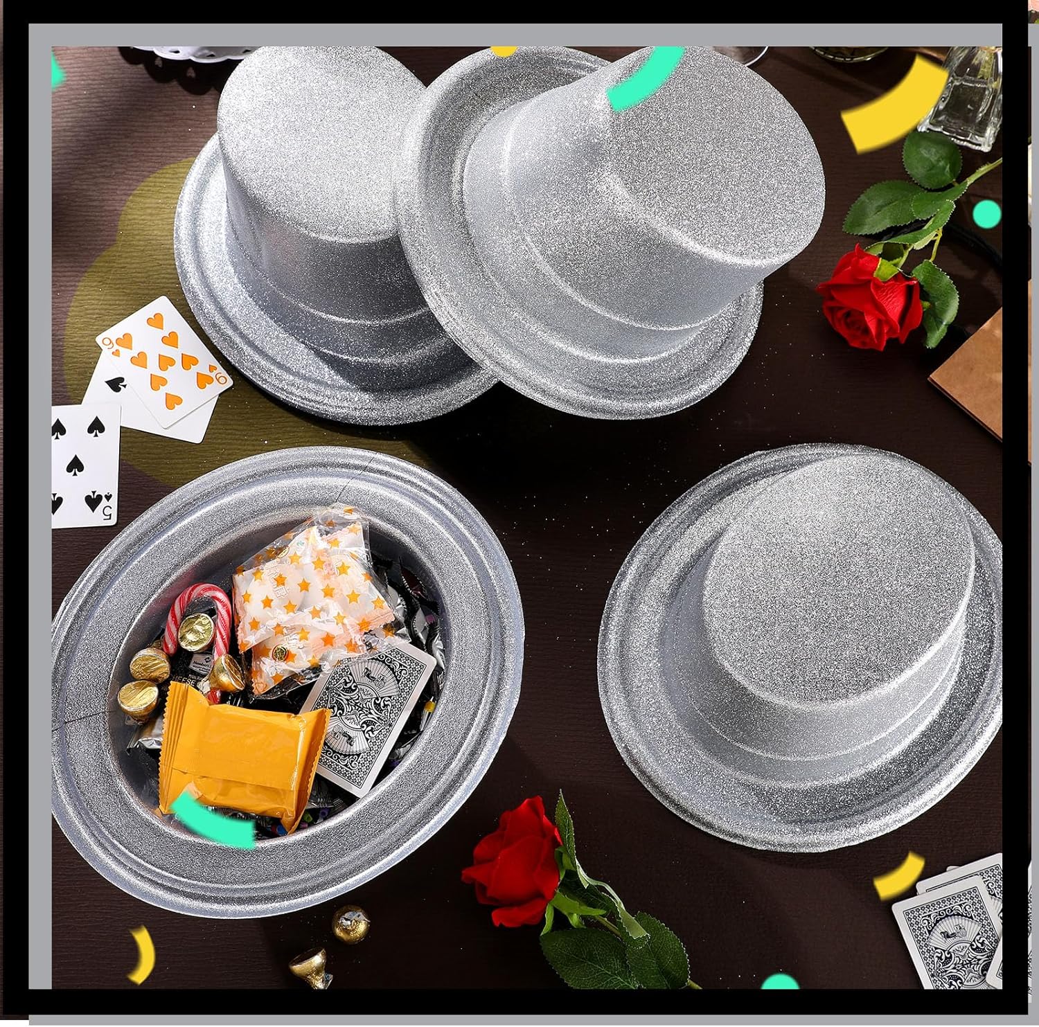 Hillban 12 Pcs Top Hats Halloween Glitter Plastic Retro Disco Party Hats for Halloween Magician Birthday Wedding Carnivals(Silver,Classic)