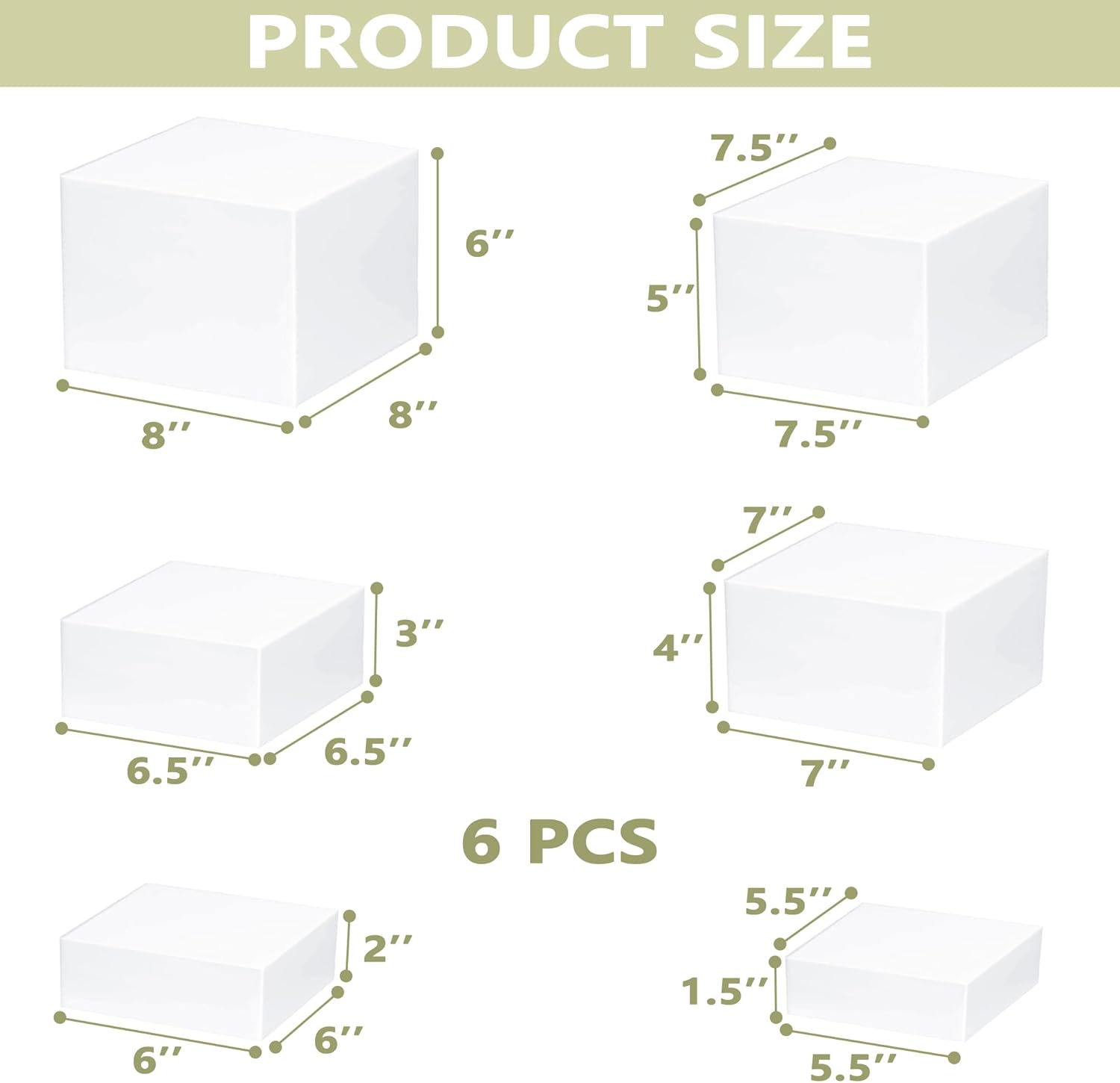 6Pcs Buffet Risers, Food Risers for Buffet Table, Acrylic Cube Display Risers with Hollow Bottom, Food Display Stand for Party Jewelry Dessert Figures (Size 5.5",6",6.5",7",7.5",8")