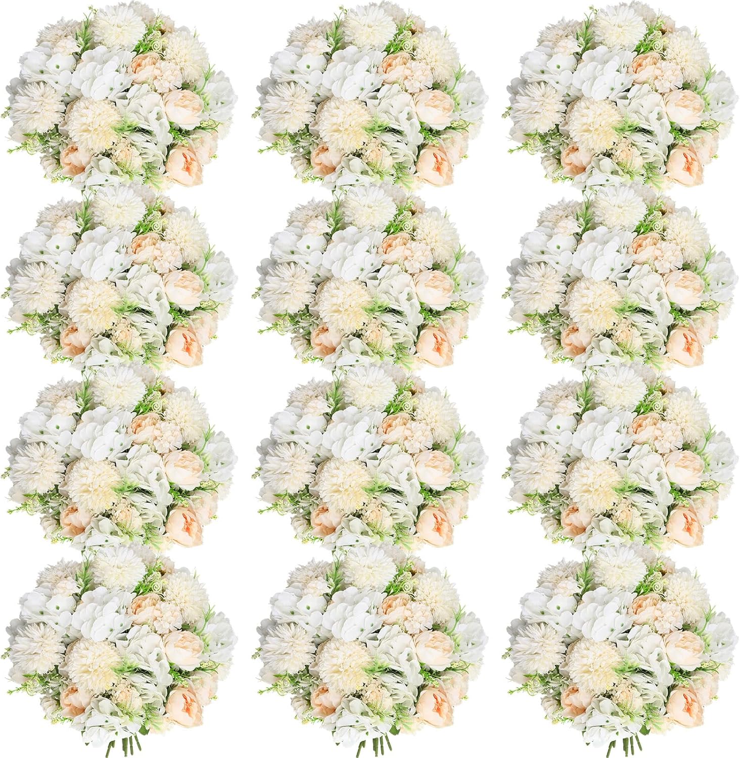 • Attractive Appearance: the fake flowers bouquet is shaped with champagne white peonies, embellished with green leaves, vivid and beautiful, designed with 7 flower heads as a bundle, including hydrangea, peony and more, bushy and vibrant, which will be favored by most people