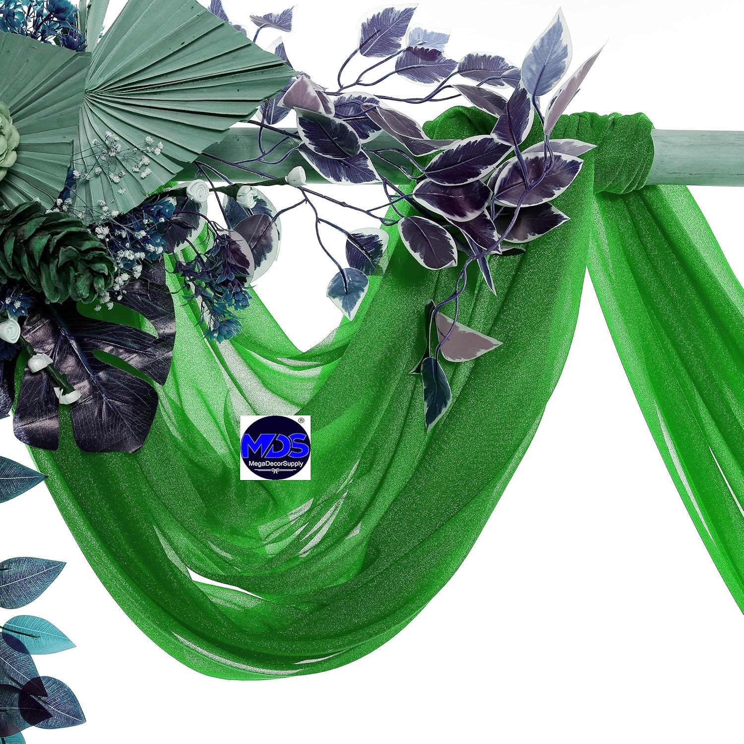 • CONTAINS : Pack of 1 PC. Each panel is 30 Inch (Wide) x 40 Feet (Long). Thermal cutting no seaming technique. Seamless, one-piece design. Each panel is cut entirely from one single piece of fabric. It is perfect length for arch either round or rectangle for a elegant puddle drop. Soft and overhanging pendants make the wedding decorations more popular.This chiffon drapery backdrop can help your party to create a warm and elegant scenes.