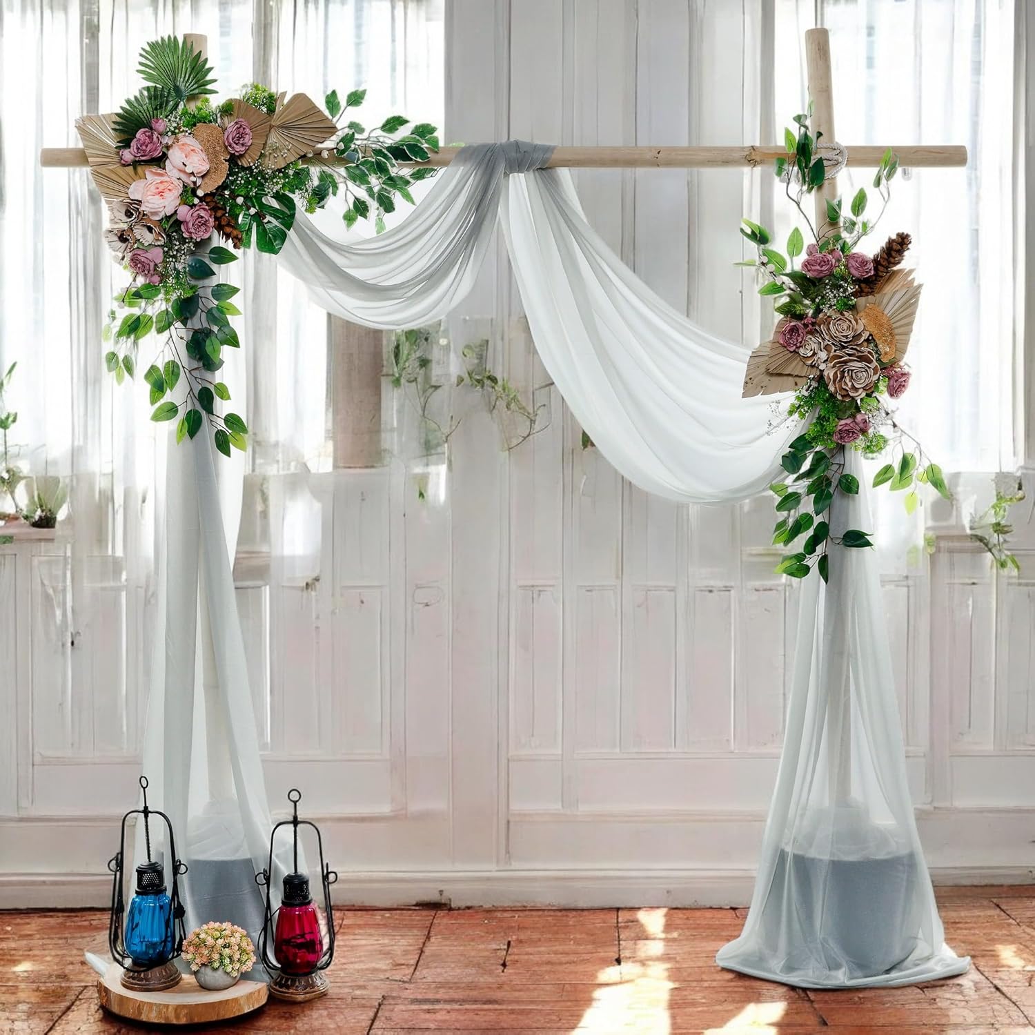 • MULTI-SCENES USES : The drapes made the entire wedding come together, perfect for your indoor outdoor baby shower parties, bridal shower, baby showers, holiday parties,wedding, family gatherings, dessert tables, candy tables.White wedding arch drape fabric can also be used on a canopy, chuppah, arbor or altar.This wedding arches for ceremony is perfect for creating beautiful pleats or letting it float off the floor, adding a very delicate, soft, beautiful touch to your stage at any event.