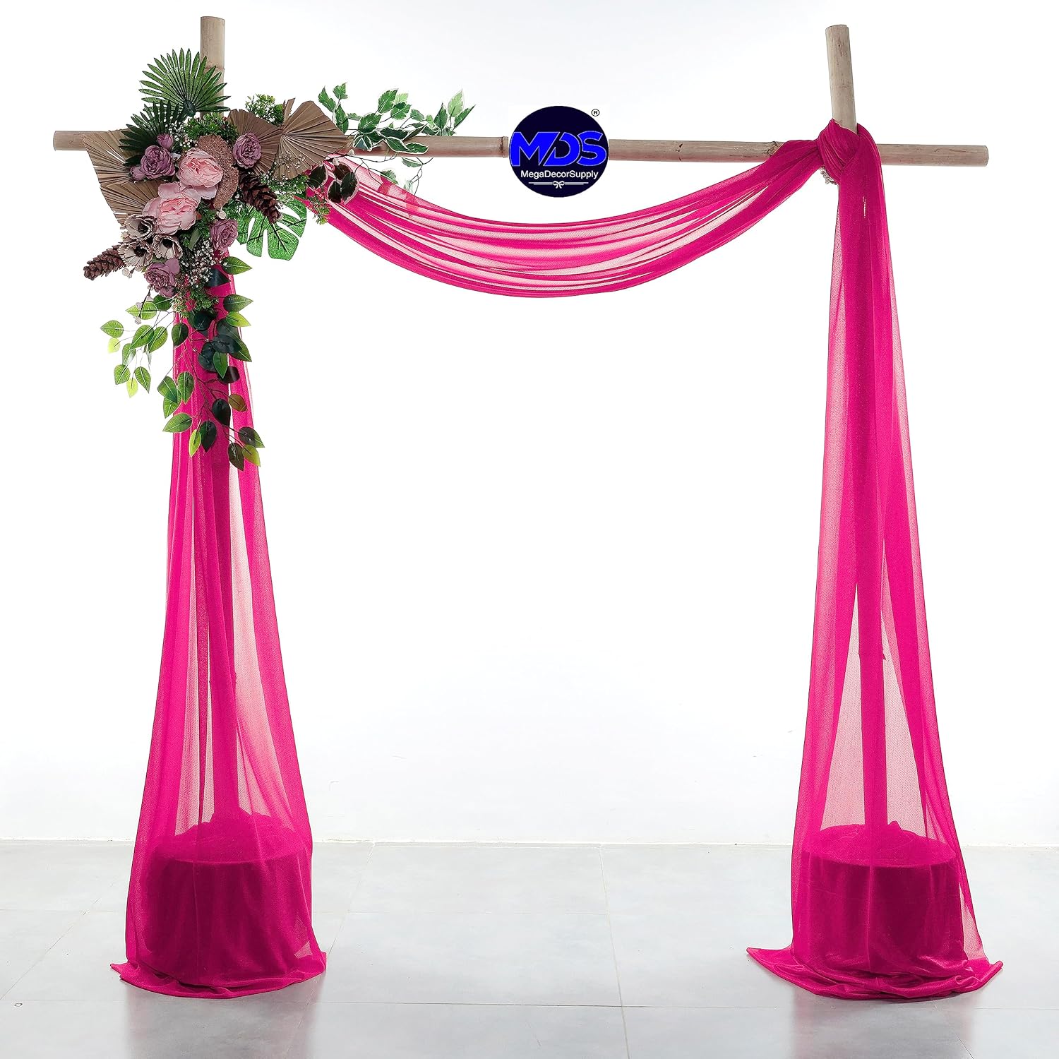 • CONTAINS : Pack of 1 PC. Each panel is 30 Inch (Wide) x 40 Feet (Long). Thermal cutting no seaming technique. Seamless, one-piece design. Each panel is cut entirely from one single piece of fabric. It is perfect length for arch either round or rectangle for a elegant puddle drop. Soft and overhanging pendants make the wedding decorations more popular.This chiffon drapery backdrop can help your party to create a warm and elegant scenes.