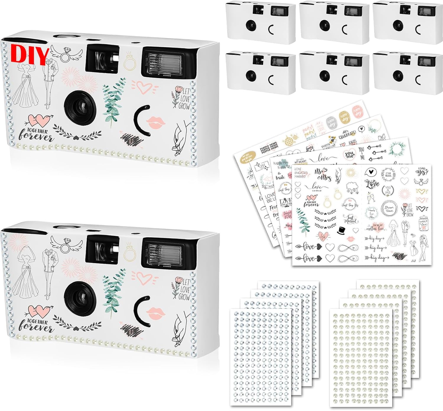 • Sufficient Pack: you will get 8 pieces of disposable cameras with flash; Each disposable camera contains 35 mm color film and AA batteries, ready for use; 4 wedding theme stickers, providing possibilities for your DIY design; 4 different sizes' rhinestone stickers, 4 pearl stickers of different sizes, can decorate your face; Sufficient quantity and rich combinations to meet your various photography and DIY needs