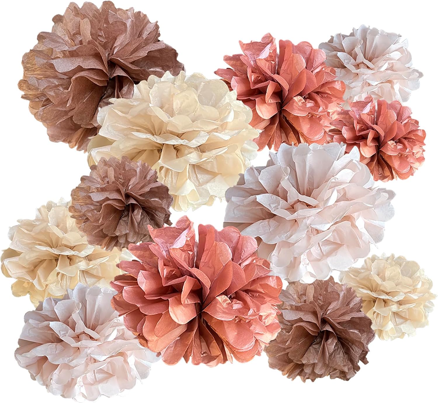 ZOOYOO Rose Gold Tissue Paper Pom Poms Set 12PCS Blush Pink Tissue Paper Flowers Decorations for Wedding, Bachelorette, Birthday Party, Bridal Shower Decorations, Baby Shower Decor