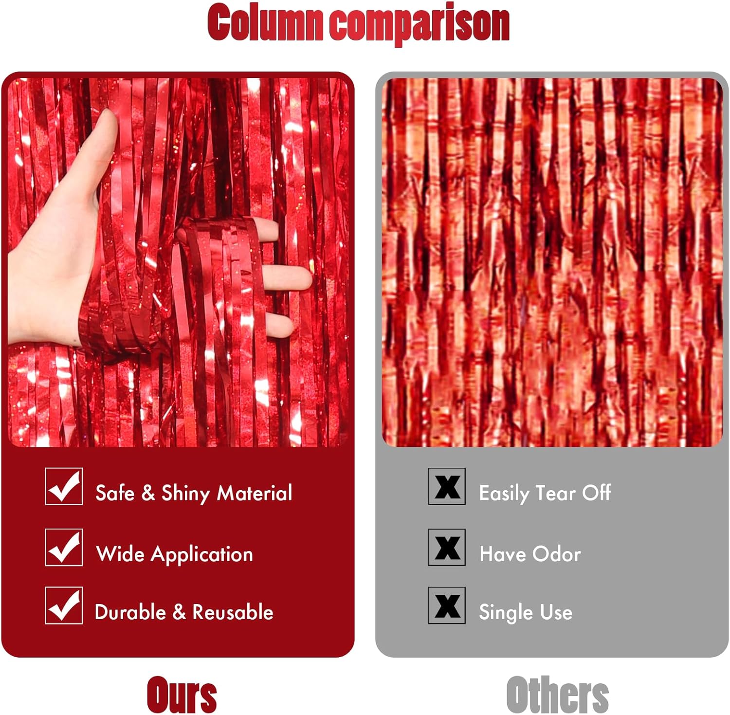 • πŸŽ‰SAFE & SHINY MATERIAL- This red tinsel backdrop is made of high-quality shiny tinsel, non-toxic, odorless, and non-fading, safe for families with children and pets. Just transform your home into a shining streamers happy birthday decorations, and enjoy the party.