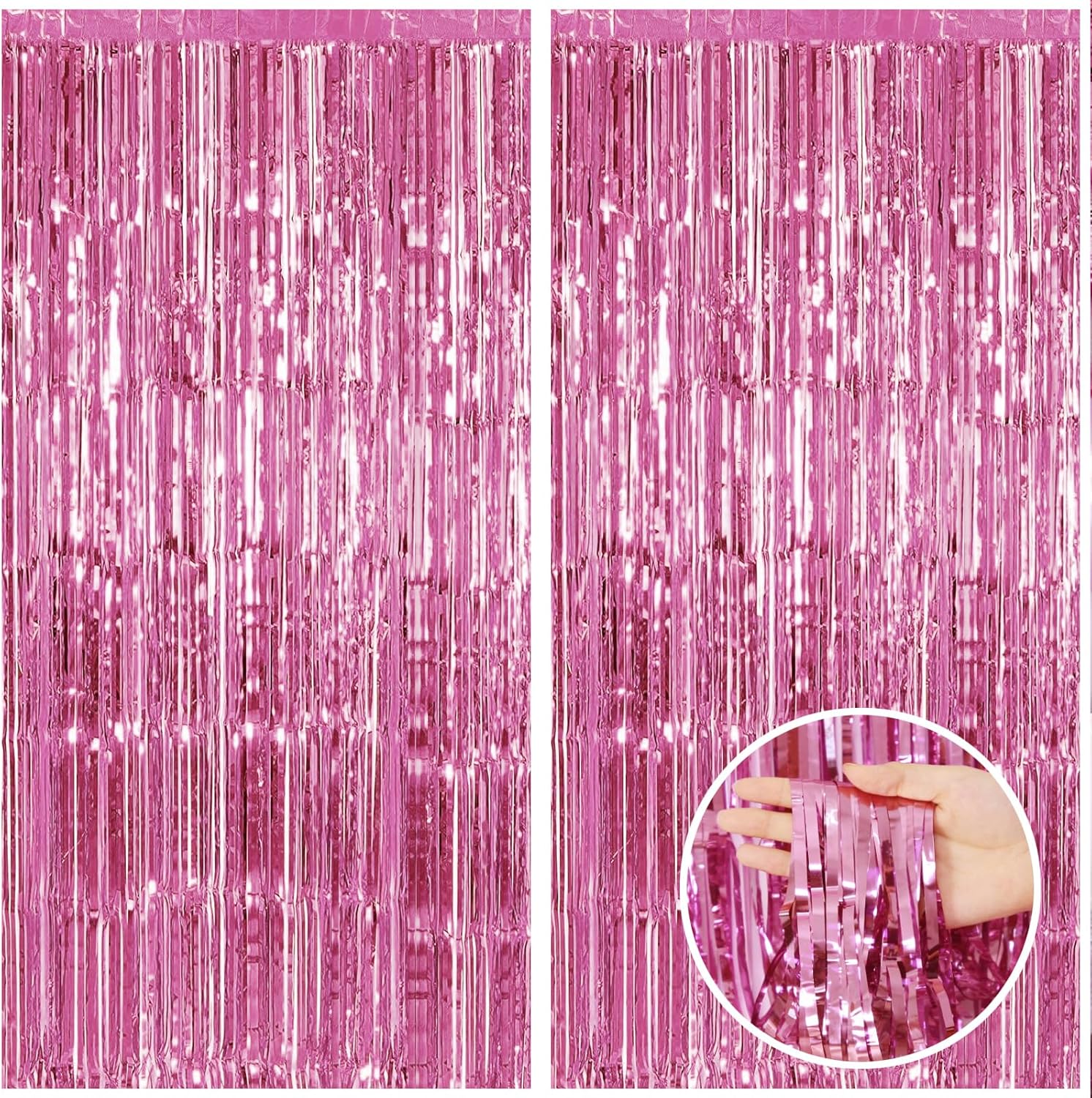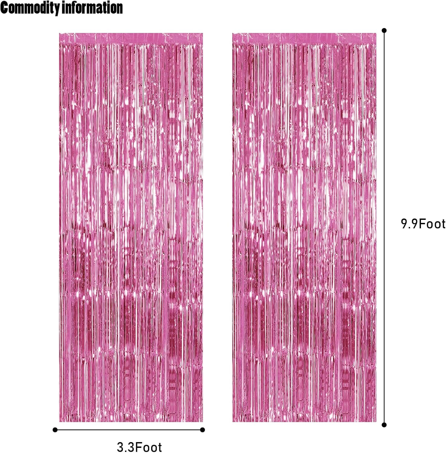 • 🎉PACKAGE INCLUDED : 2 pack of pink foil fringe curtains, the size of each tinsel curtain is 3.3 ft x 8.2 ft, enough length for hanging on a door or covering a wall fully, suitable for any parties.