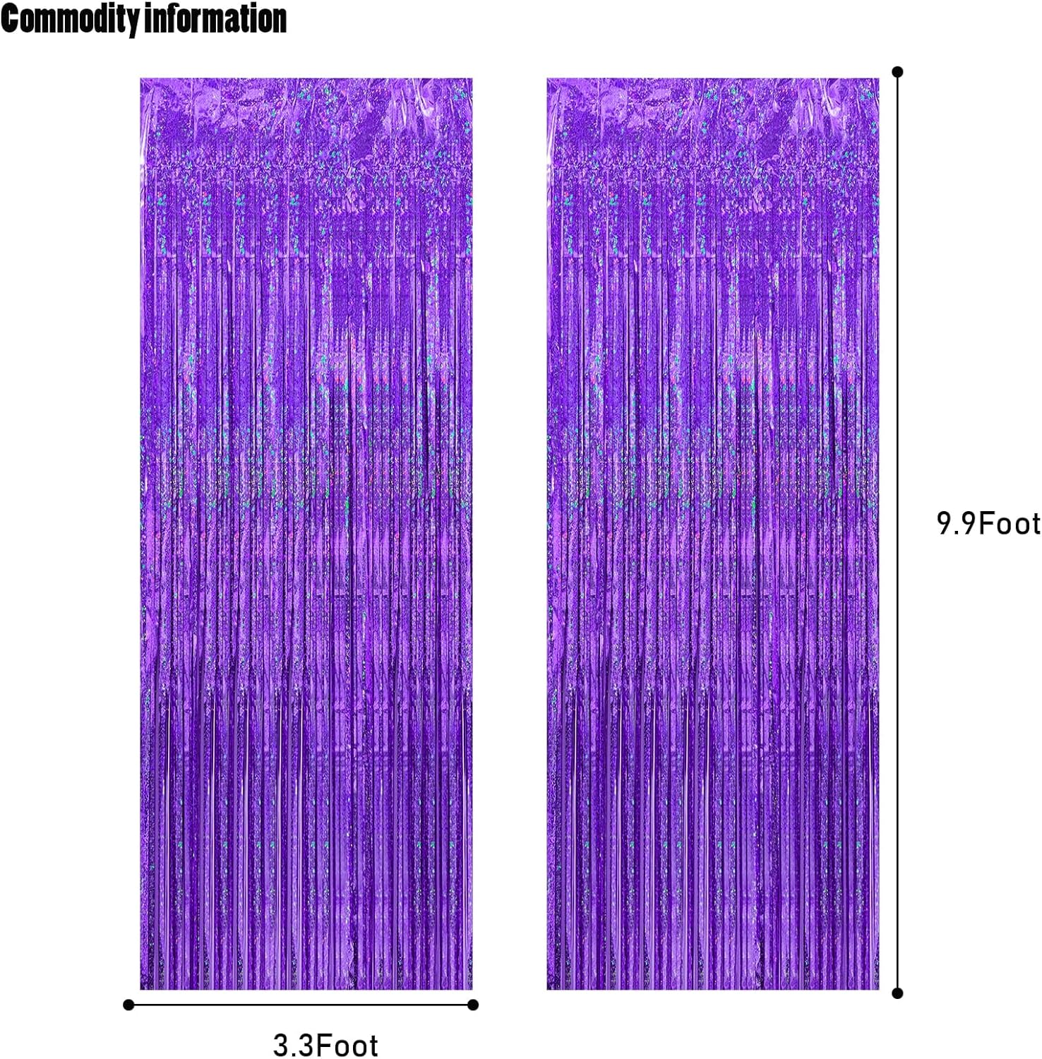 • πŸŽ‰PACKAGE INCLUDED : 2 pack of Glitter purple foil fringe curtains, the size of each tinsel curtain is 3.3 ft x 8.2 ft, enough length for hanging on a door or covering a wall fully, suitable for any parties.
