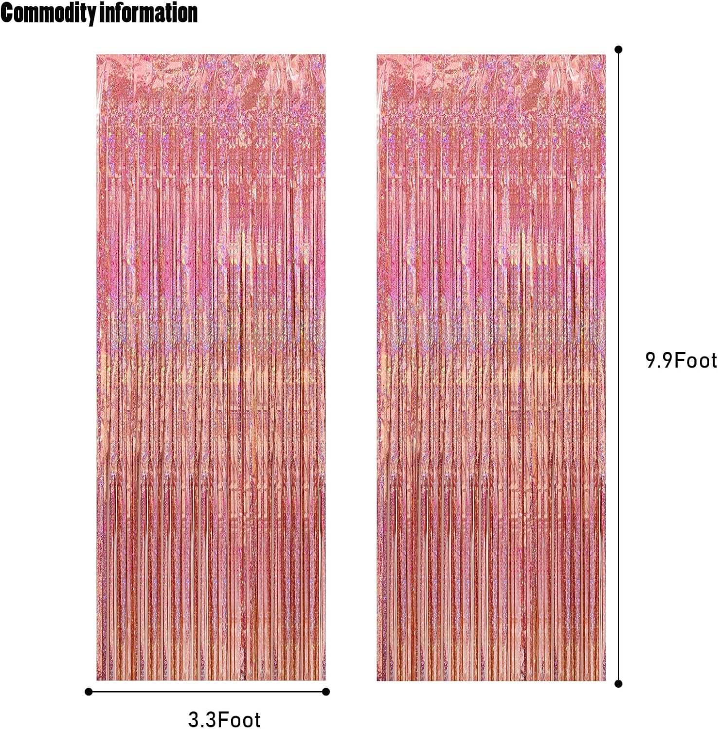 • 🎉PACKAGE INCLUDED : 2 pack of Glitter rose gold foil fringe curtains, the size of each tinsel curtain is 3.3 ft x 8.2 ft, enough length for hanging on a door or covering a wall fully, suitable for any parties.
