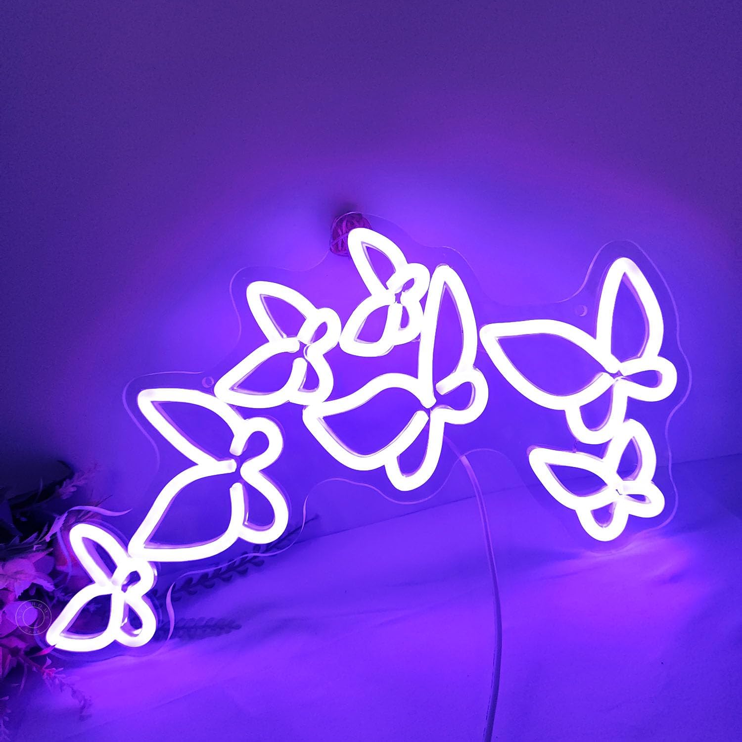 SYLHOME Butterfly Led Neon Light Sign Girls Bedroom Kids Room Beauty Studio Living Room Wedding Birthday Christmas Party Light Up Sign 16.5" X 8.9" USB