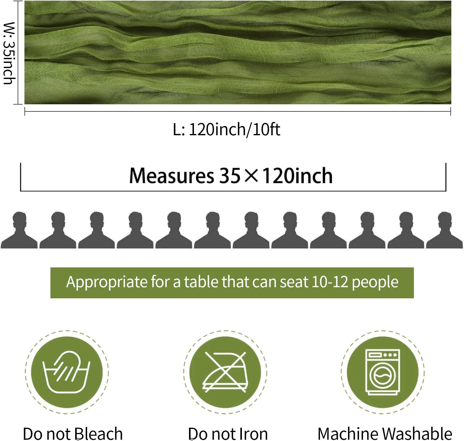 10 Packs Olive Green Cheese Cloth Table Runners, 10FT Boho Gauze Moss Green Cheesecloth Table Runner for Wedding Bridal Baby Shower Fall Thanksgiving Table Decoration
