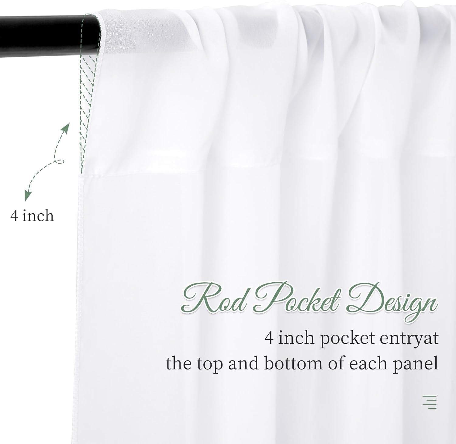 • ๐ŸธRomantic Sheer Arch Drapes: The wedding ceiling curtains are finished with firm and exquisite stitching in all margins, which are airy and lightweight; here is a 4 inches pocket for rod or pole entry at the top and bottom of each panel creating beautiful draping. This sheer ceiling is also called as wedding decorations for ceiling, chiffon draping, tent draping fabric for wedding, event draping fabric, wedding wall covering, white stage curtains, etc.