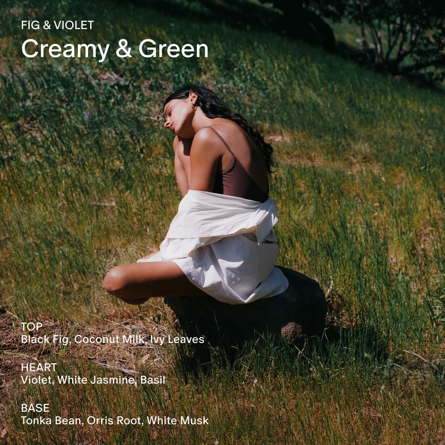 • Scent Notes β€” Top: Black Fig, Coconut Milk, Ivy Leaves. Heart: Violet, White Jasmine, Basil. Base: Tonka Bean, Orris Root, White Musk.