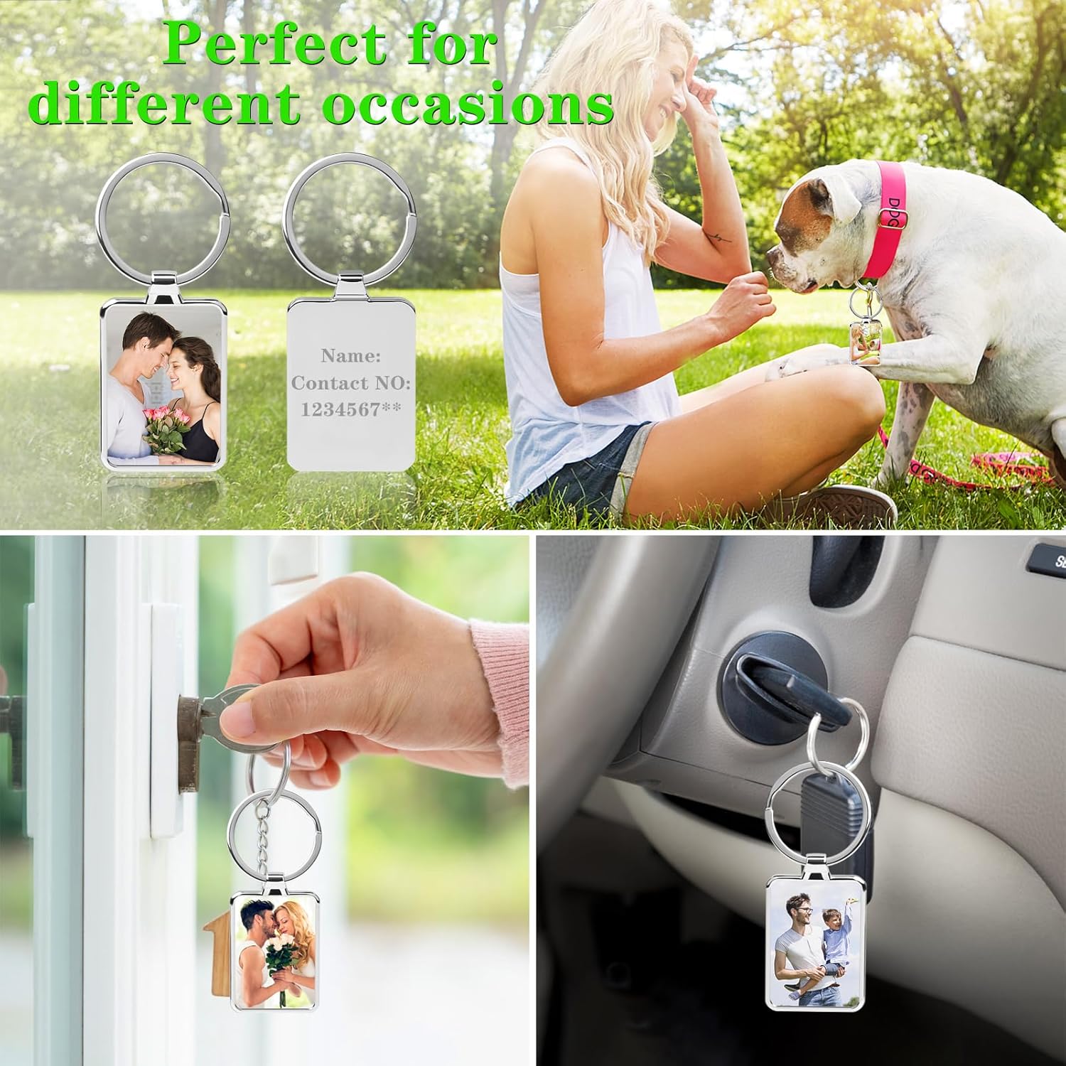 • A Thoughtful Customized Gift: How To Custom Keychains ? - Click the “Customize Now” button on the page,Upload your favorite HD photo and the text you want to customize.The custom photo keychain comes in an exquisite rose gift box, symbolizing love. It's a meaningful gift for your father's day gift, significant other, and friends. Perfect for holidays like Thanksgiving, Christmas, New Year, Valentine's Day, wedding anniversaries, birthdays, or any special occasion, it's a heartfelt keepsake