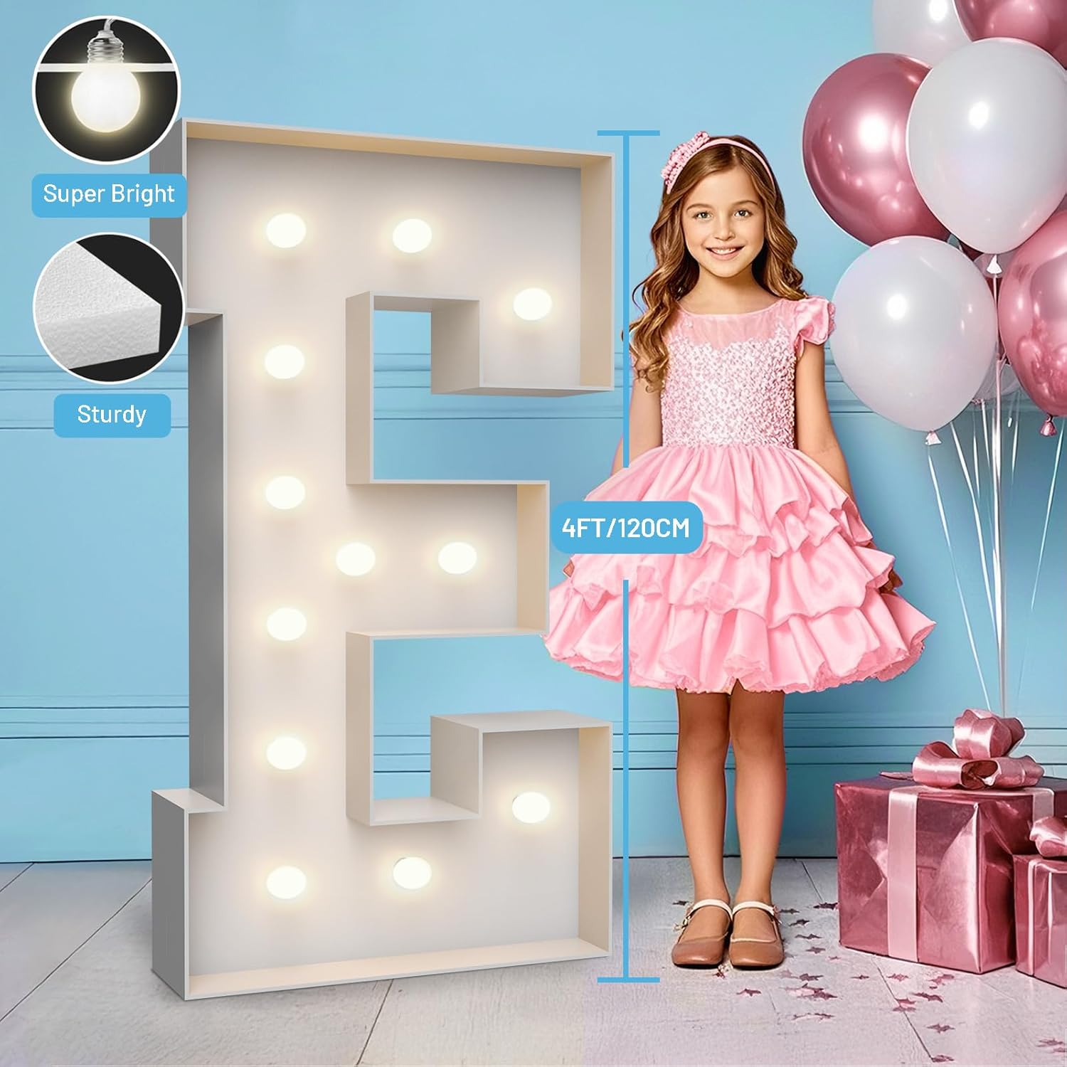 4FT Marquee Light Up Letters E,Party Decoration Large Marquee Light Up Letters with Weighted Water Bag,Pre-cut Foam Board Set Can Be Used for Birthdays,Weddings,Baby Anniversaries