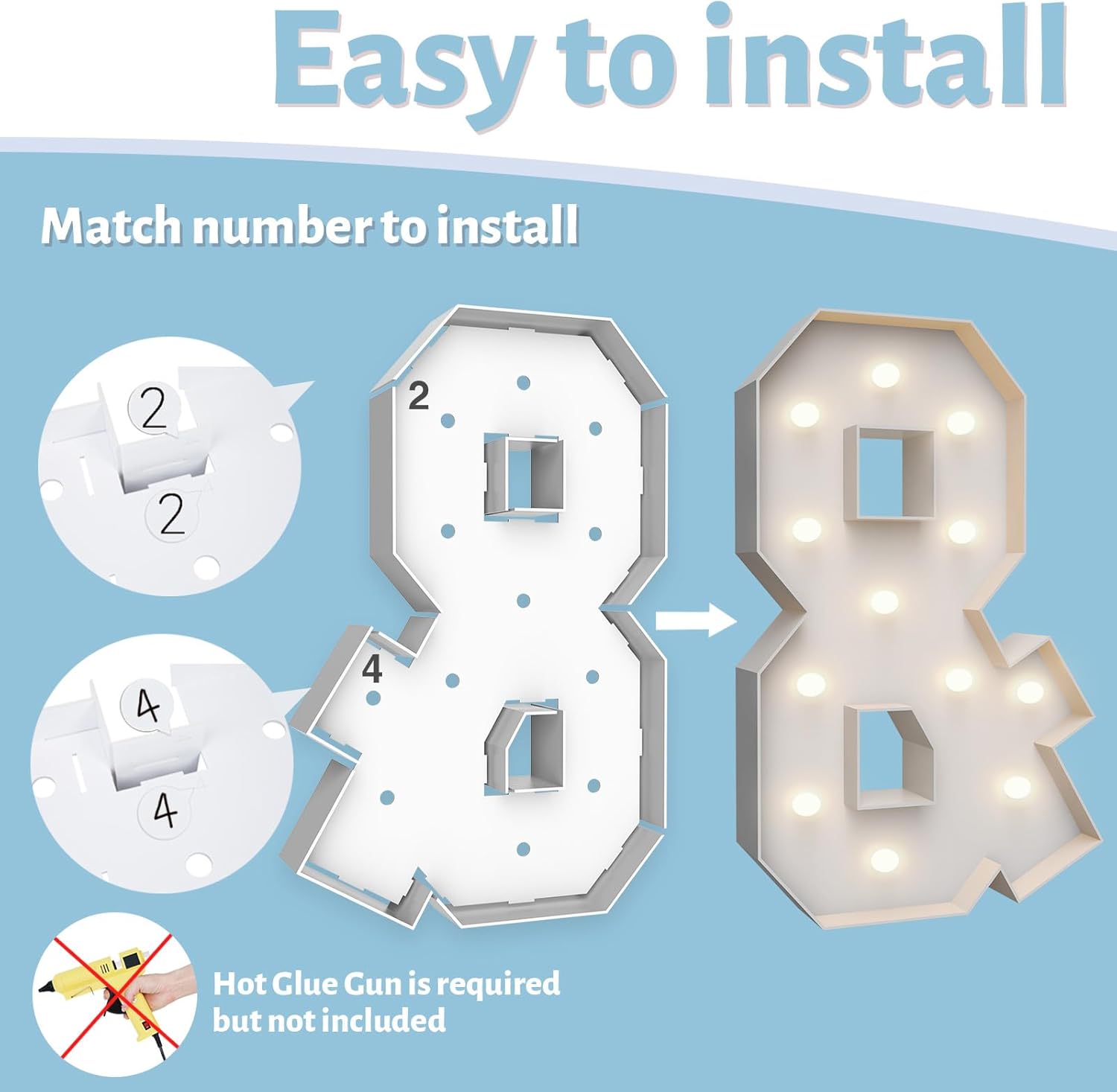 • ASSEMBLY REQUIRED: The marquee numbers need to be assembly with hot glue gun(not included in the package) Assemble it in advance will make your party amazing and fantastic