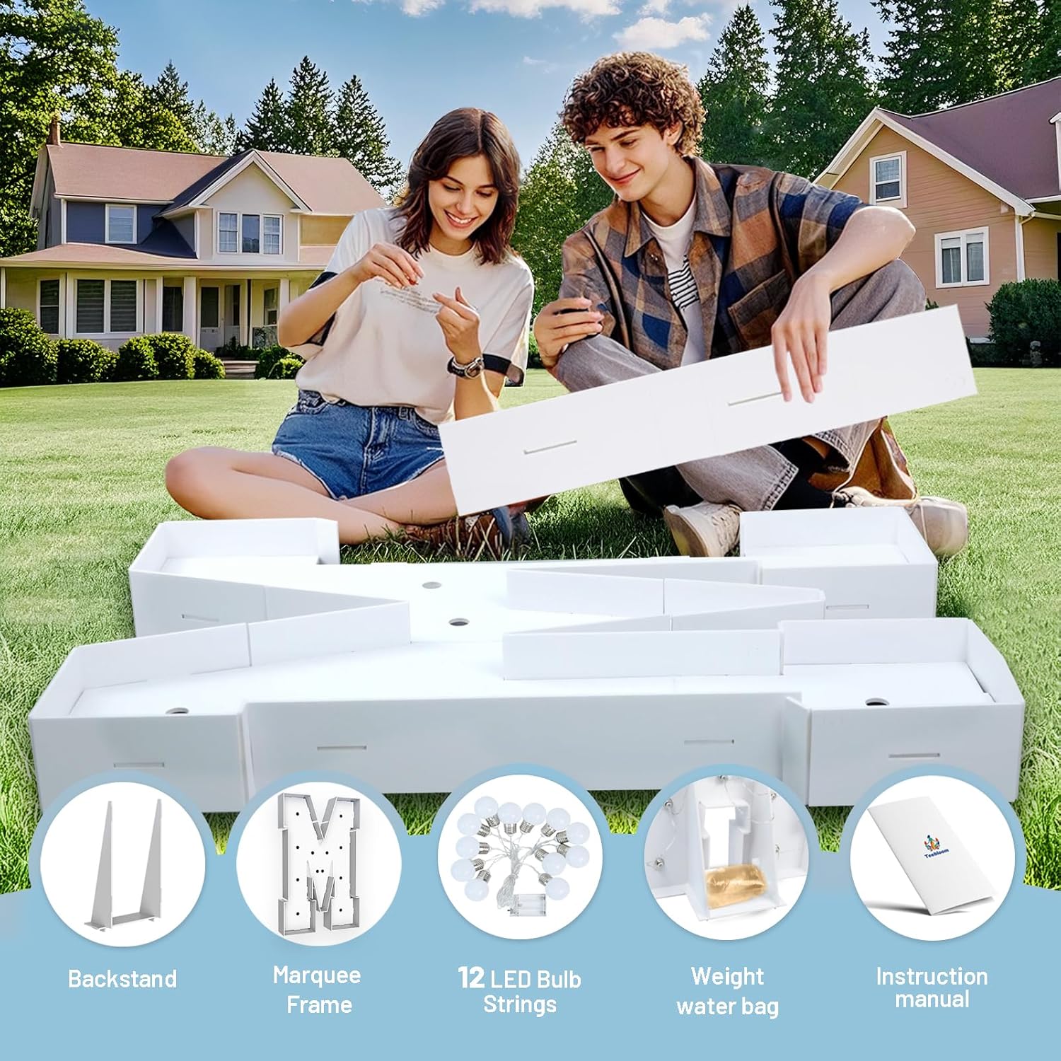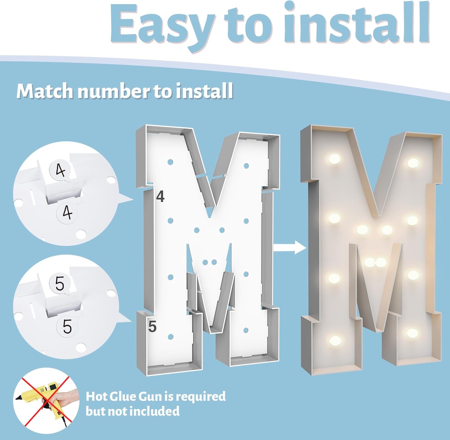 4FT Marquee Light Up Letters M,Party Decoration Large Marquee Light Up Letters with Weighted Water Bag,Pre-cut Foam Board Set Can Be Used for Birthdays,Weddings,Baby Anniversaries