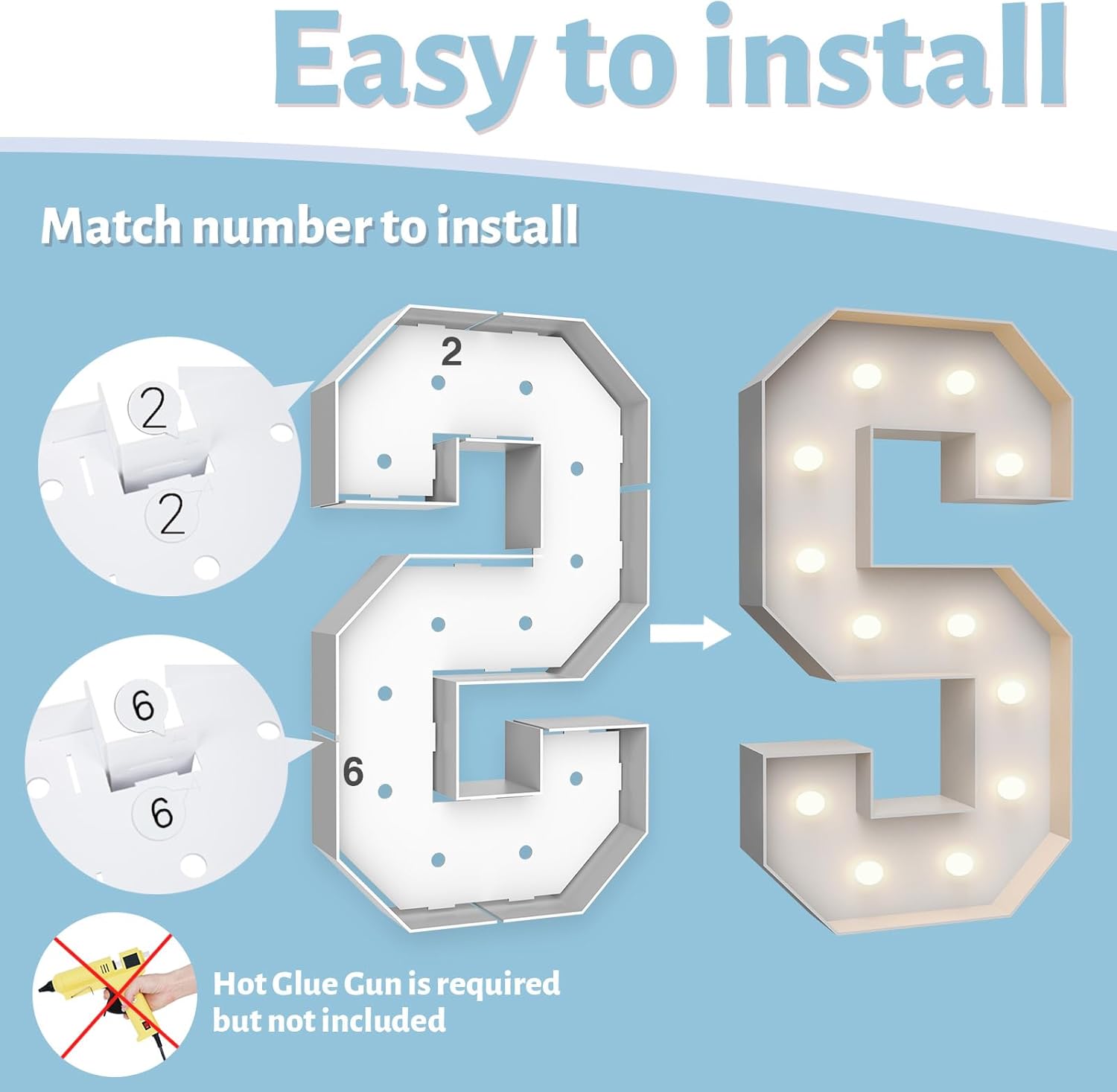 • ASSEMBLY REQUIRED: The marquee numbers need to be assembly with hot glue gun(not included in the package) Assemble it in advance will make your party amazing and fantastic