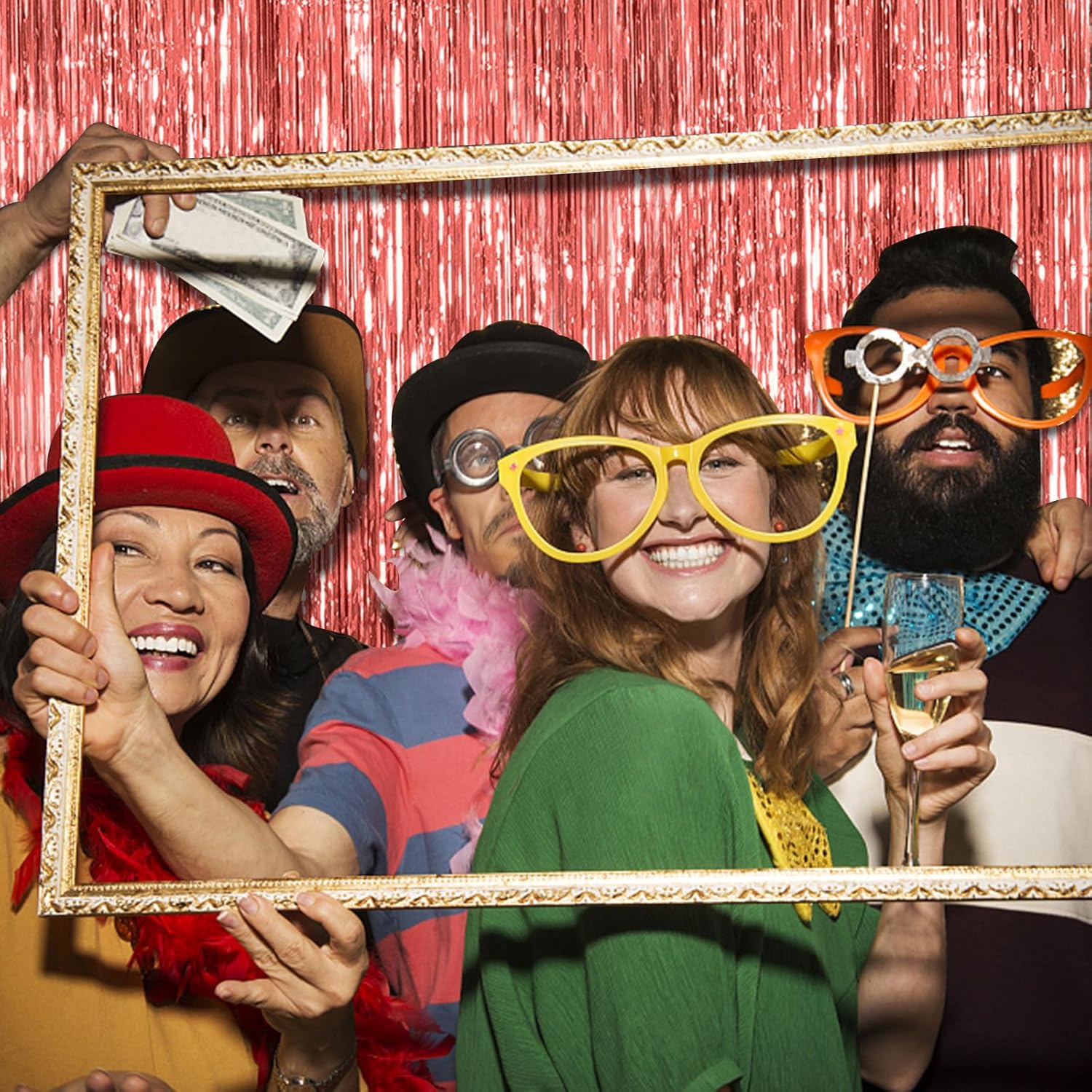 • Party Streamers Backdrop: 5Packs/Set, each pack curtains size is 3.28 ft x 6.56 ft, enough length foil fringe backdrops are perfect for the door or wall to create an impressive decoration for parties, events, and photo booths. Create your own party decorations now!