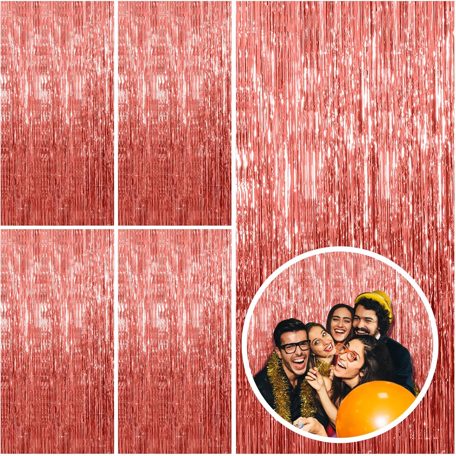 5 Pack Rose Gold Fringe Curtain Backdrop Birthday Bachelorette Party Decorations Metallic Tinsel Streamers Foil Backdrop Christmas Graduation Wedding New Year Party Decorations
