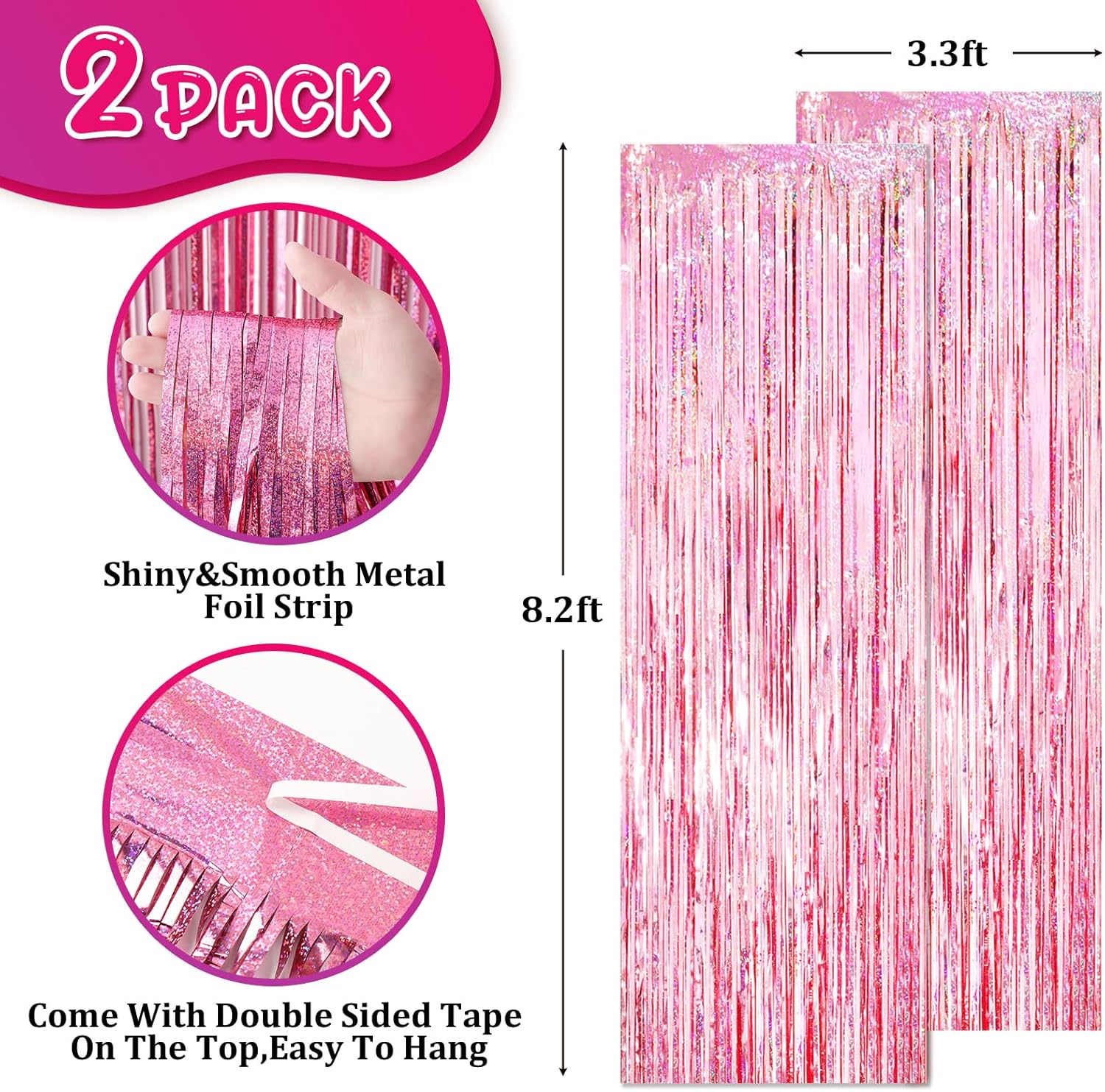 • Premium Material: This Laser Pink foil curtain backdrop is made of stable tinsel, non-fading, stay shiny and reusable. Unfold it and then enjoy your glittering party
